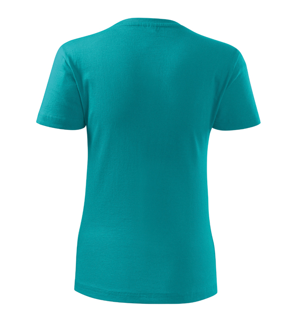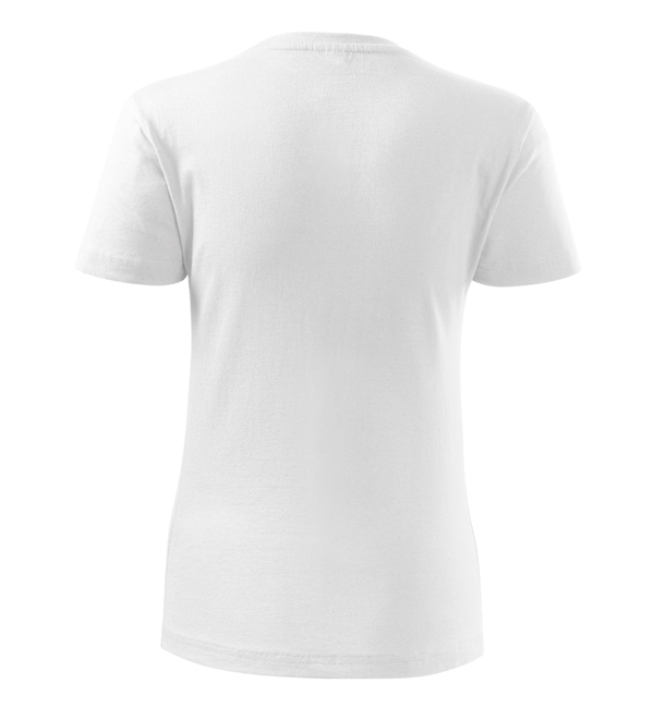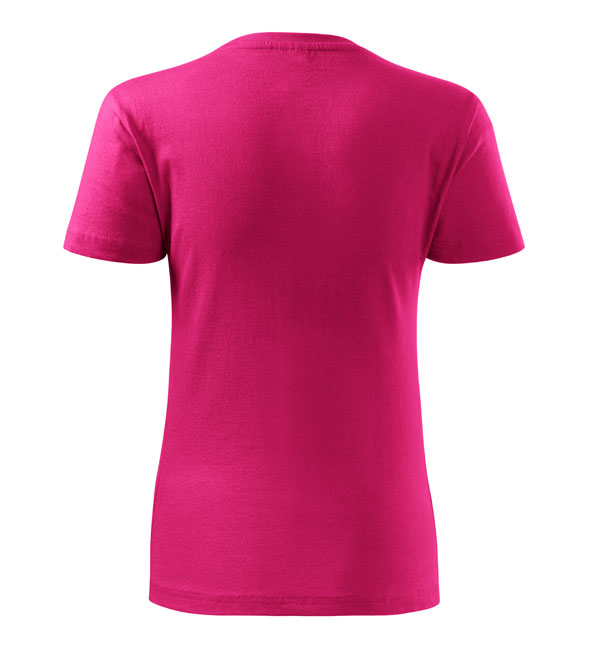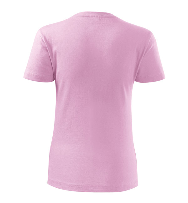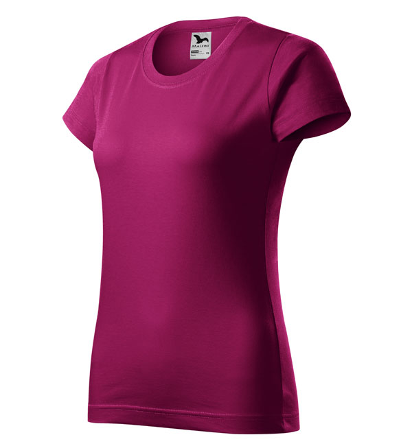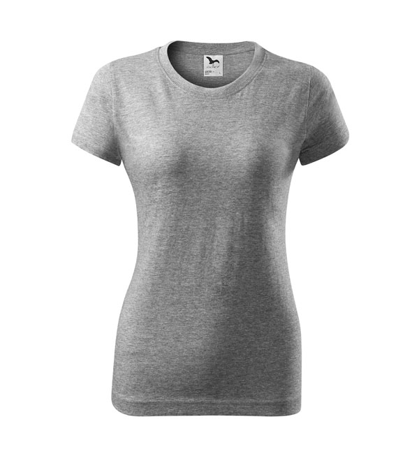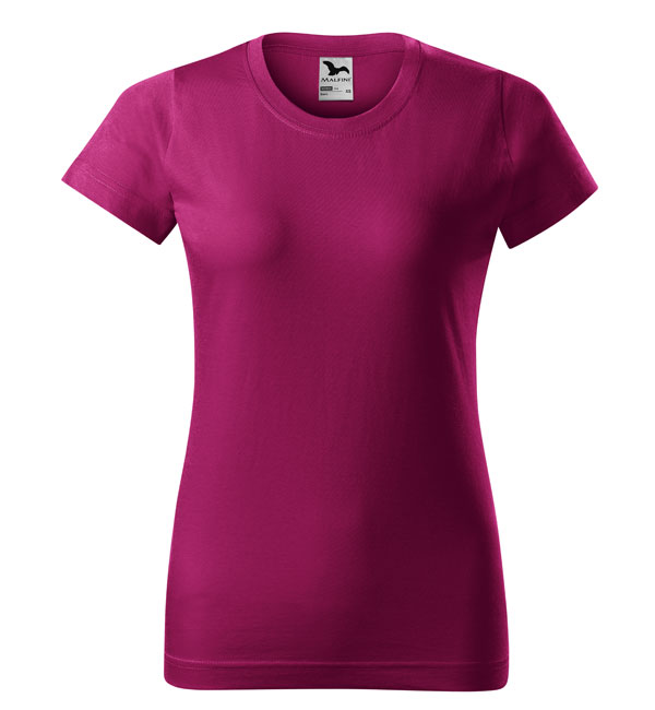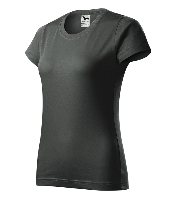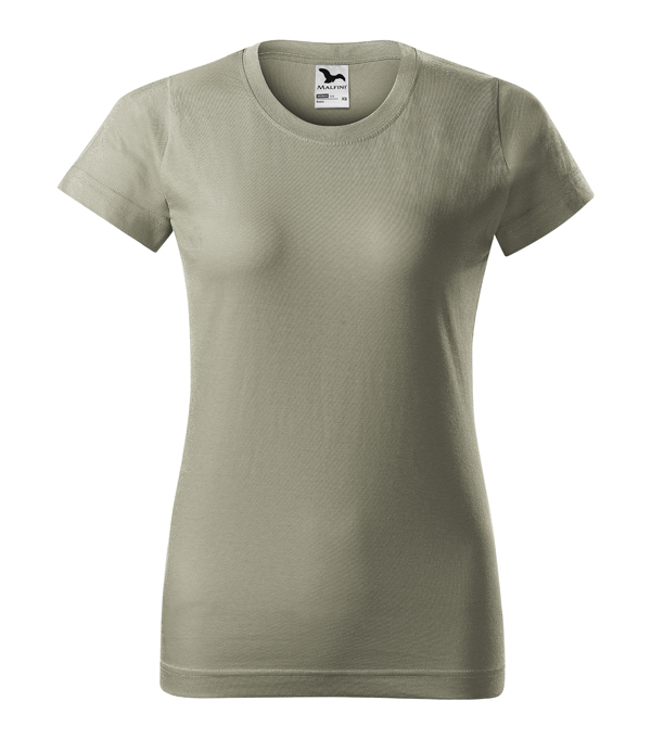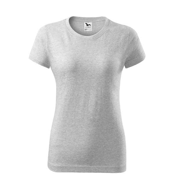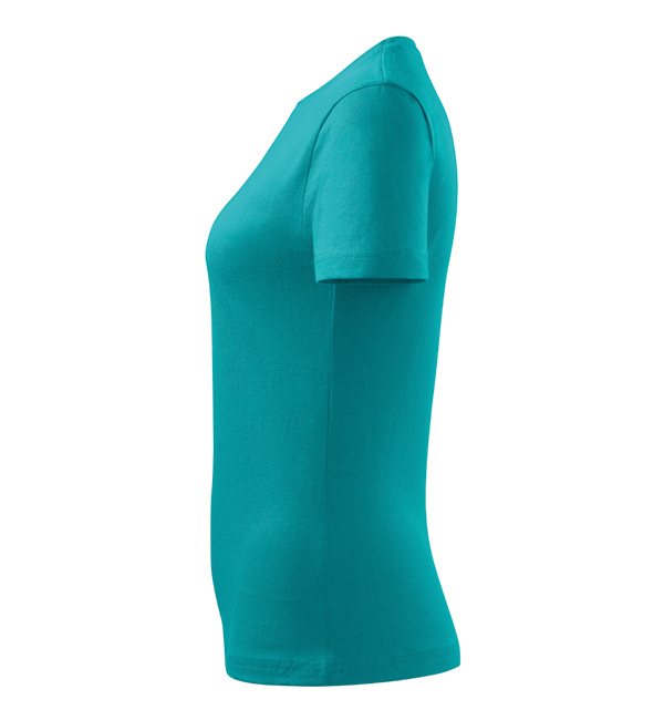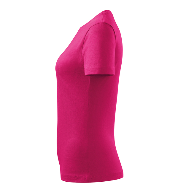 Koszulka damska wysokiej jakości o średniej gramaturze. Krój podkreślający damską sylwetkę. Wąska lamówka ze splotu żeberkowego z dodatkiem 5% elastanu. Taśma wzmacniająca na ramionach. Uzupełnienie męskiego modelu koszulki Basic. Świetnie nadaje się pod haft i nadruk.