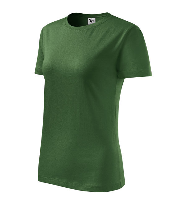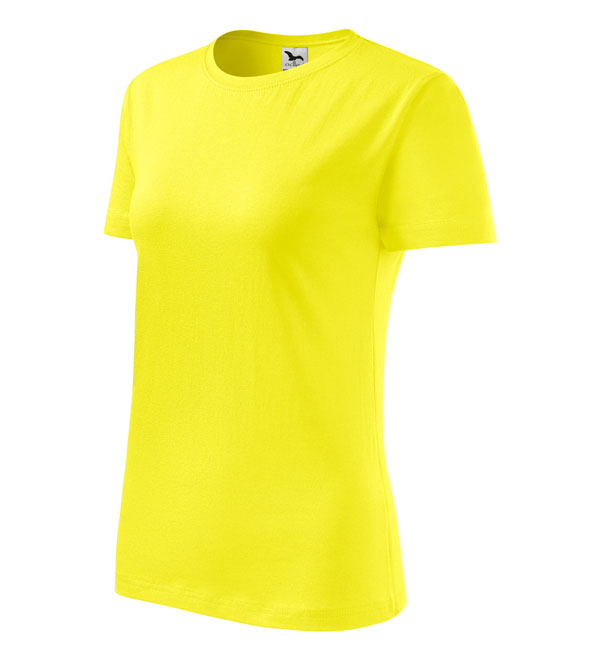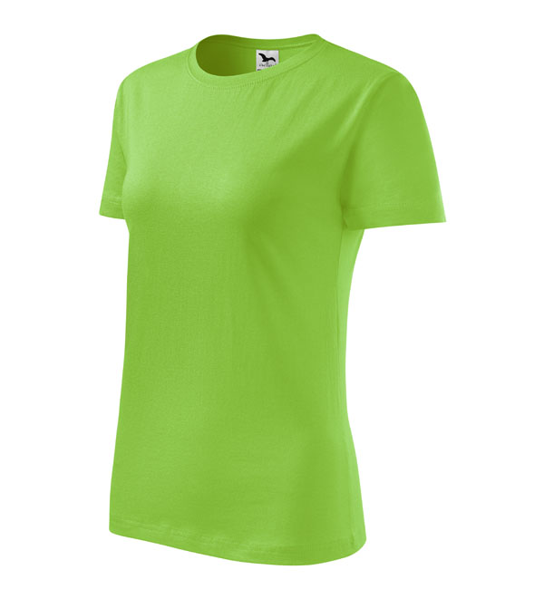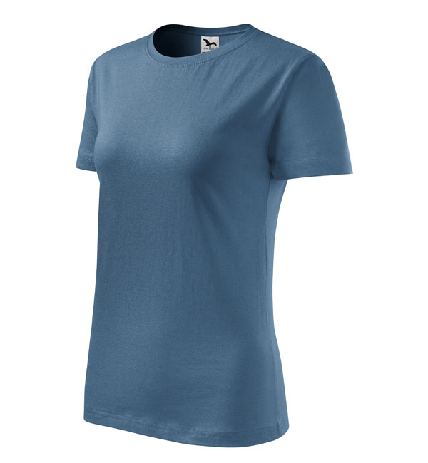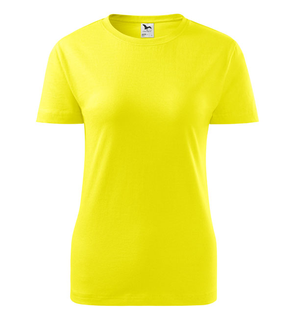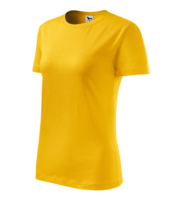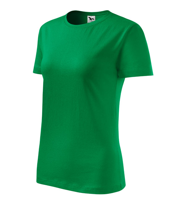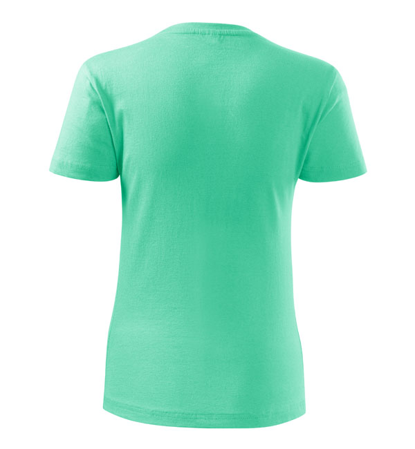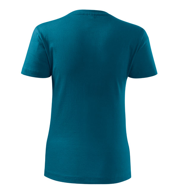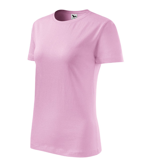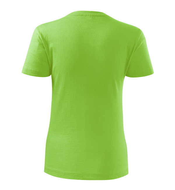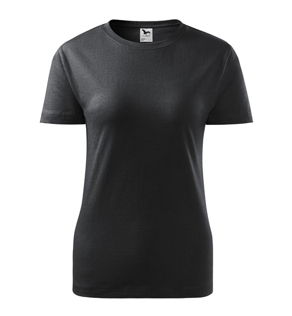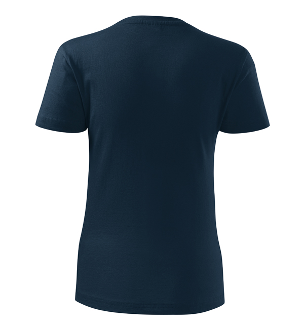 Koszulka damska wysokiej jakości o średniej gramaturze. Krój podkreślający damską sylwetkę. Wąska lamówka ze splotu żeberkowego z dodatkiem 5% elastanu. Taśma wzmacniająca na ramionach. Uzupełnienie męskiego modelu koszulki Basic. Świetnie nadaje się pod haft i nadruk.