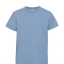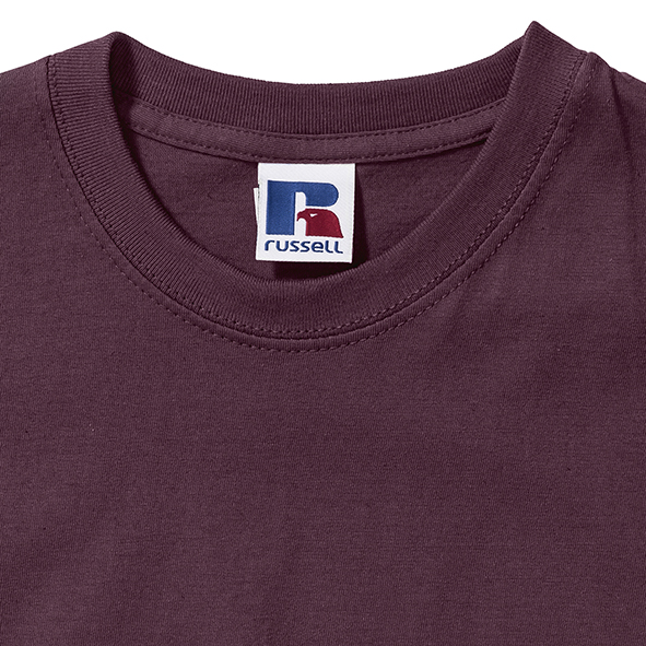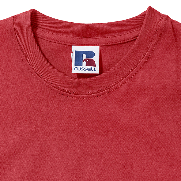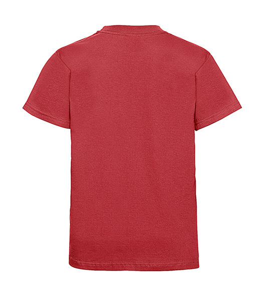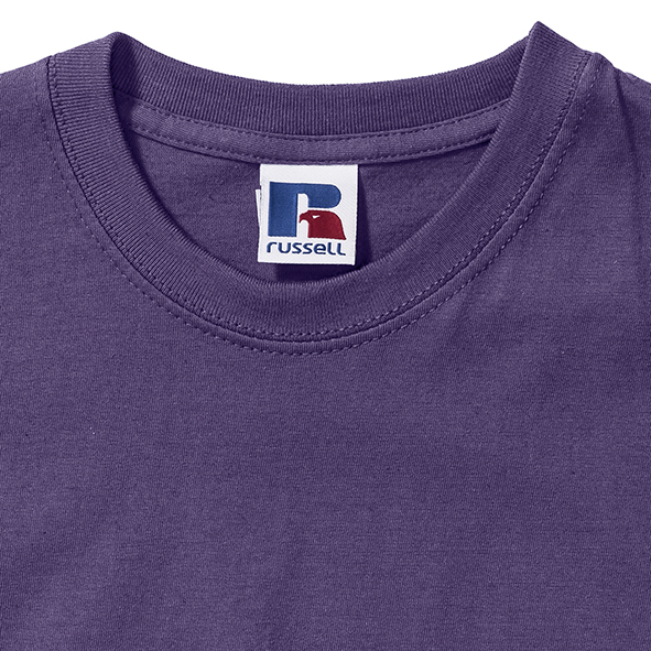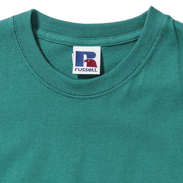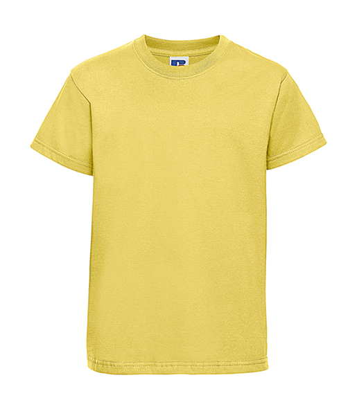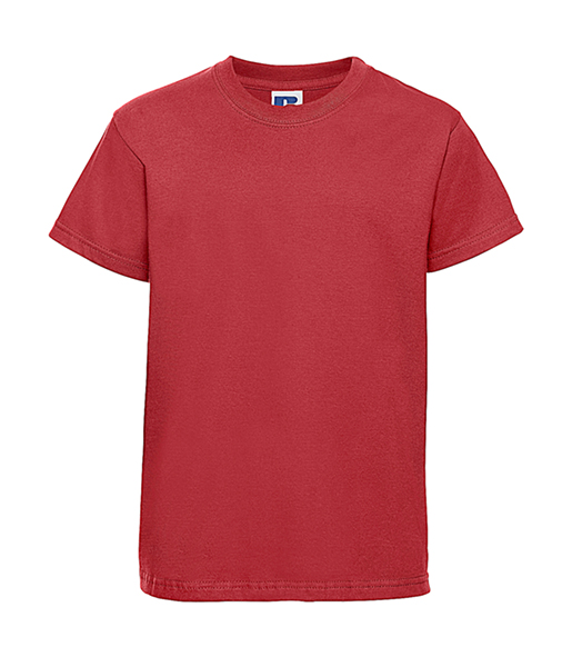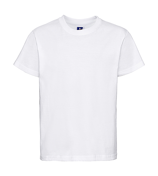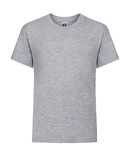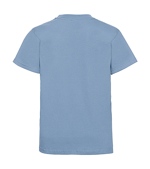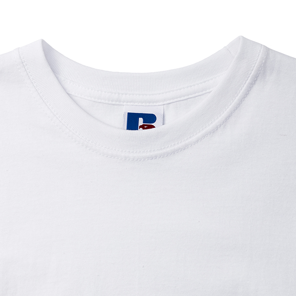Koszulki dziecięce marki Russell o gramaturze 180g. Wykonane w 100% z bawełny ring-spun. Ściągacz wokół szyi zszyty w dwóch miejscach. Wzdłuż karku i ramion taśma wzmacniająca. Podwójny ścieg wokół szyi, rękawów i na dole koszulki. Bez bocznych szwów.