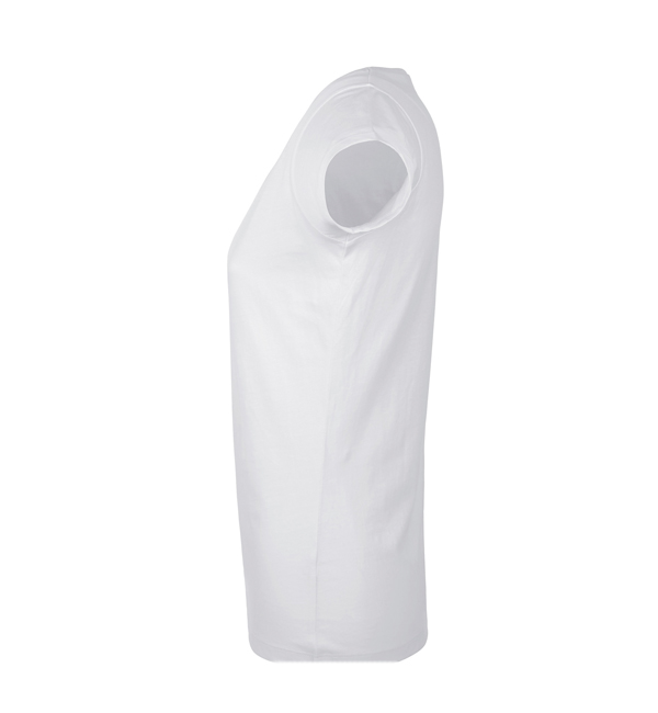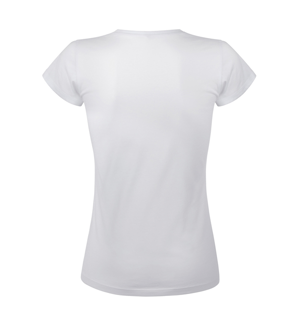 Damski t-shirt z okrągłym dekoltem i krótkim rękawem. 100% bawełny czesanej. Modny i kobiecy styl. Dopasowany krój z głębokim dekoltem wykończonym ściągaczem. Rękawki oraz dół koszulki wzmocniony podwójnymi szwami. Metka rozmiarowa na szyi.