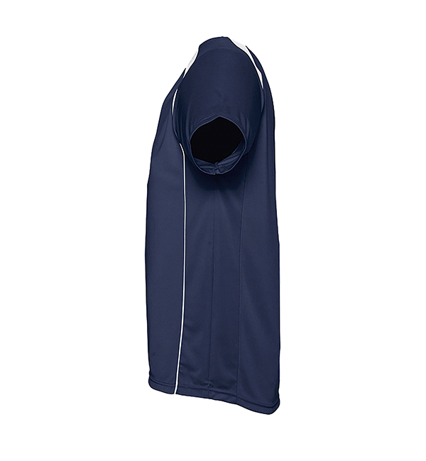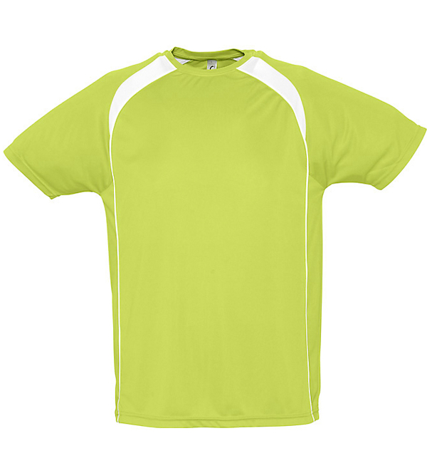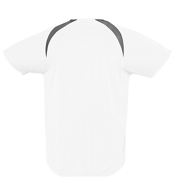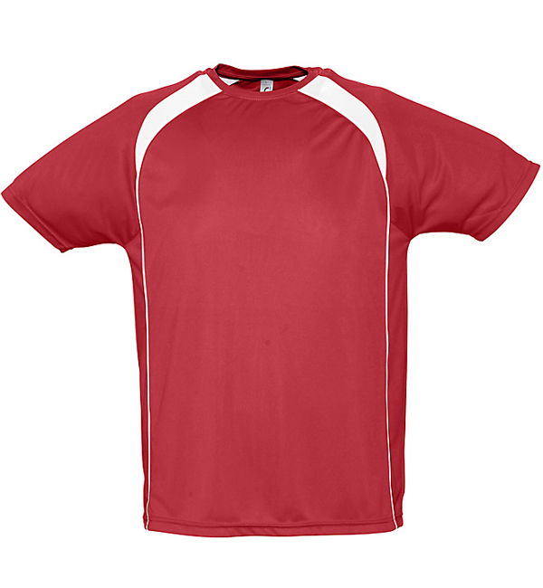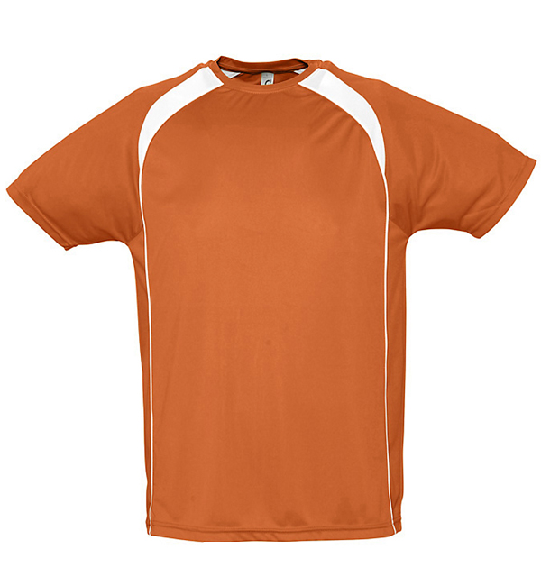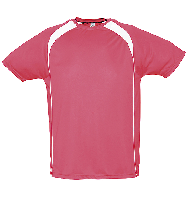100% oddychającego poliestru. Sportowy i meodny styl. Kontrastowe rękawy typu raglan, lamówka wokół szyi.