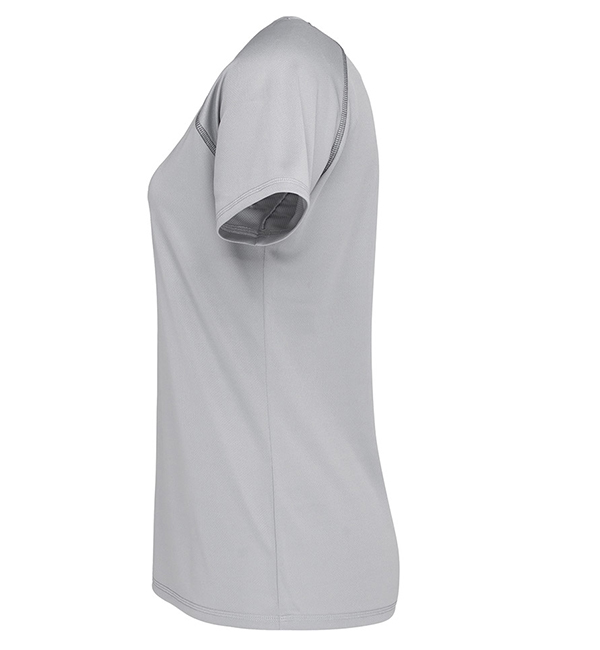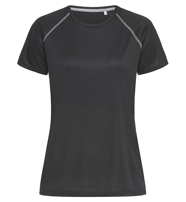 Komfortowo skrojony sportowy T-shirt dla kobiet z raglanowymi szwami w kolorze kontrastującym, wykonany z szybko schnącego i funkcjonalnego materiału, czyli oddychającej siateczki.