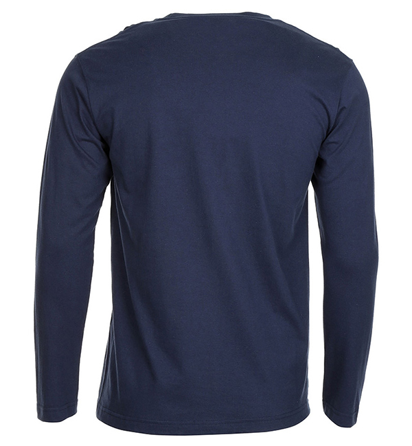 T-shirt męski z długim rękawem ze 100% wysokogatunkowej bawełny jednołożyskowej. Casual Fit, bez szwów bocznych, taśma wzmacniająca szwy rękawów, rękawki bez ściągaczy. Maksymalna temperatura prania 40°C.