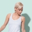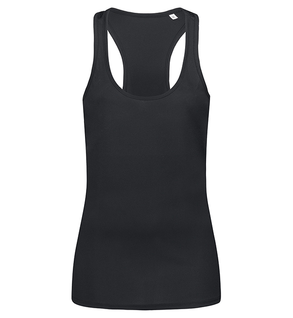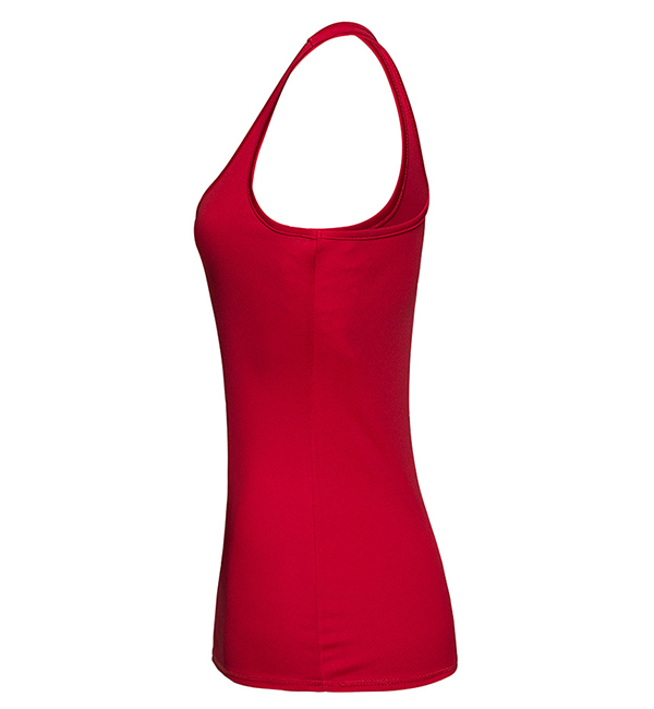 Siateczka o drobnych oczkach, rozciągliwa dzianina, dekolt i podkrój pach z lamówką, mała metka rozmiarowa na karku, ramiączka zapewniające swobodę ruchu, etykietka z przepisem prania w szwie bocznym, szwy boczne.
