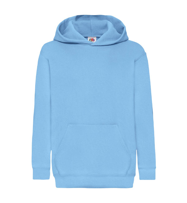 czarny white granatowy ciemnożółty butelkowy zielony czerwony burgund kelly green ciemnoniebieski jasnoróżowy fuchsia heather grey ciemnogranatowy fioletowy błękitny azurowyFRUIT OF THE LOOM Bluza Dziecięca Classic z Kapturem 280g