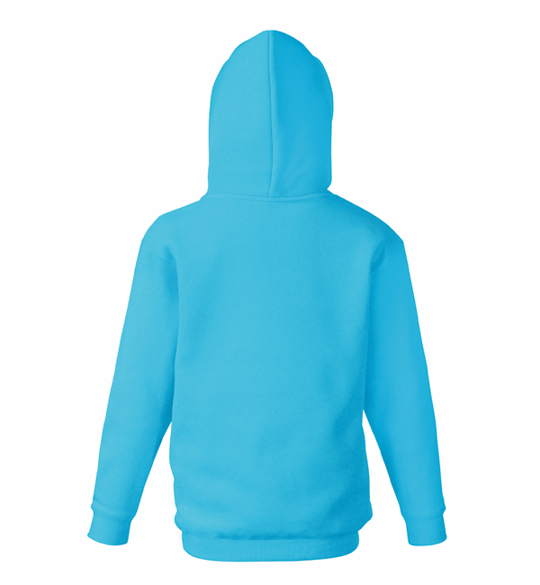 Kaptur z podwójnego materiału bez sznurka, zgodnie z Europejskimi przepisami dotyczącymi odzieży dziecięcej. Dwie wcięte kieszenie na przodzie. Zakryty zamek błyskawiczny dla lepszego nadruku. Wykonana z przędzy Belcoro® miększej w dotyku i lepszej w procesie nadruku. Ściągacze wykonane z prążkowanej taśmy bawełnianej z dodatkiem Lycry®.