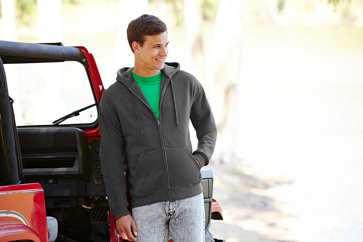 czarny czerwony ciemnogranatowy heather grey ciemnoniebieski klasyczna oliwka burgund czekoladowy ciemnoszaryFRUIT OF THE LOOM Premium Bluza z kapturem i długim zamkiem błyskawicznym 280g
