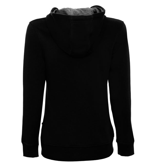 Lekka bluza z kapturem; materiał od wewnątrz szczotkowany; wykończenie antypillingowe materiału; kaptur wyścielony kontrastowym materiałem typu waffle; regulacja kaptura ozdobnym sznurkiem; zamek główny olastikowy, kostkowy; dwie przednie kieszenie; rękawy i dół bluzy wykończone elastycznym ściągaczem; podójne szwy