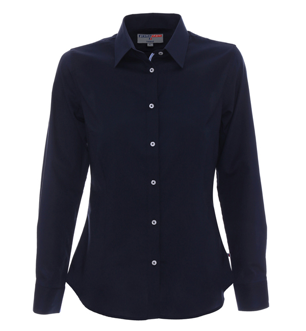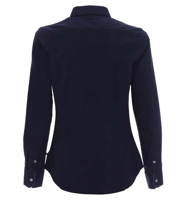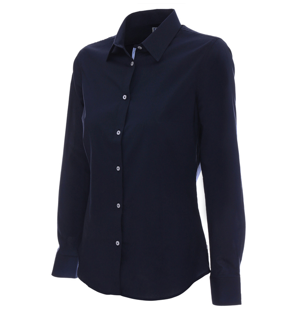 Koszula damska; tkanina typu ripstop; taliowany krój; elementy w kontrastowym materiale, kontrastowe guziki.