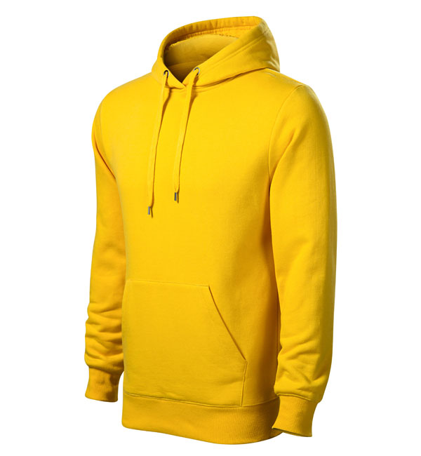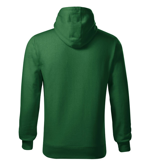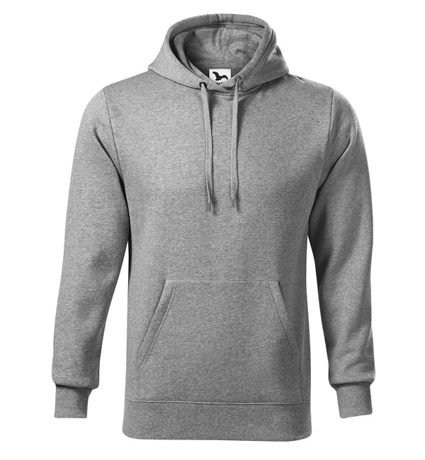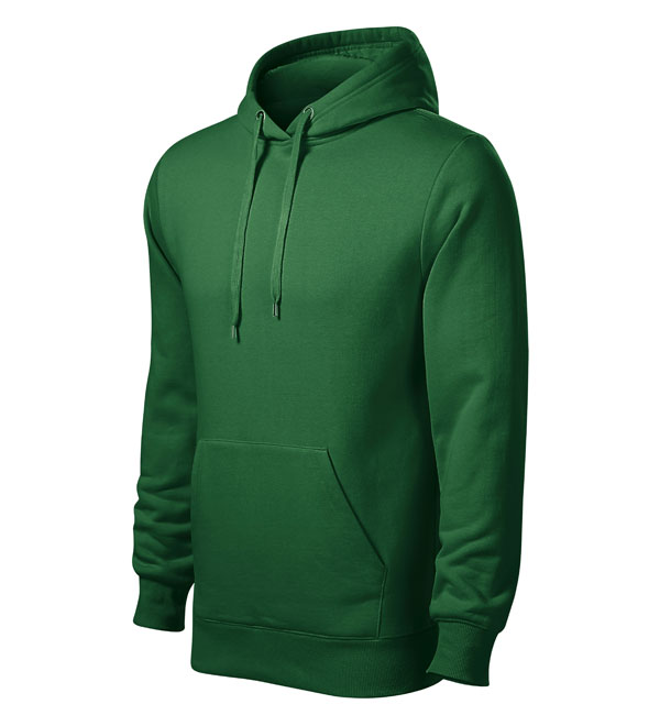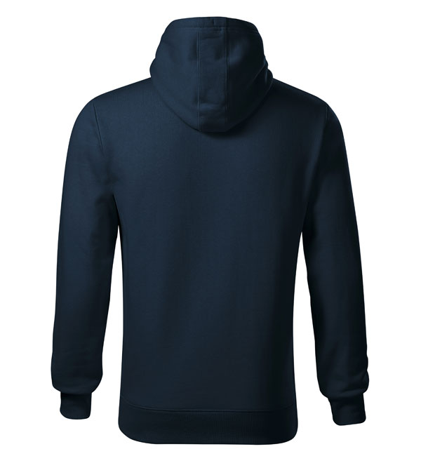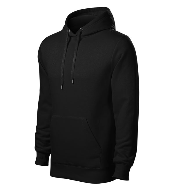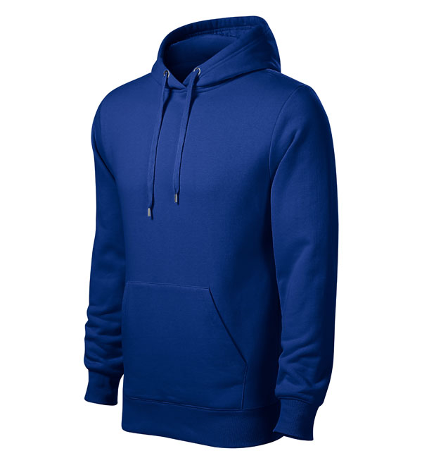 Męska bluza z kapturem; przednia kieszen typu "kangurka"; kaptur z podszewką i sznurkiem; wykończenie dzianiną ściągaczową 2:2 z dodatkiem 5% elastanu; wewnętrzna tylna część wokół szyi wykończona taśmą.
