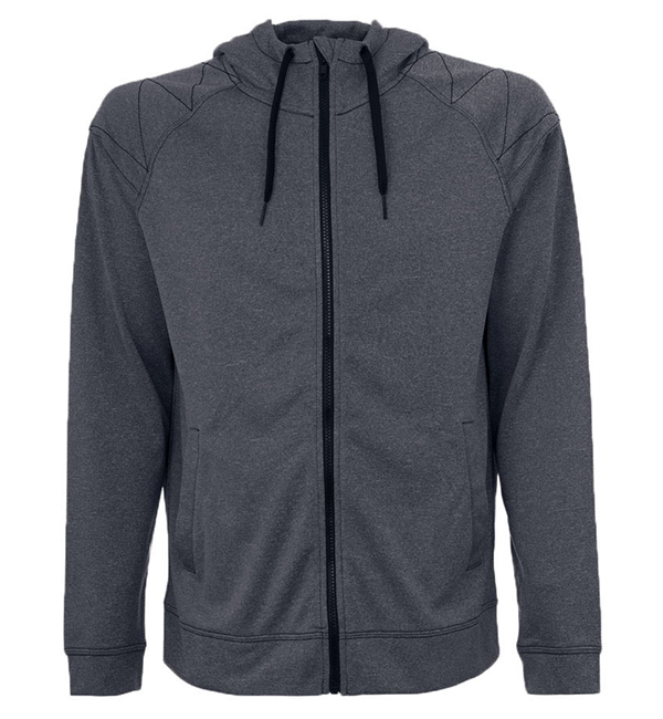 Lekka rozpinana bluza z kapturem dla mężczyzn, z szerokimi mankietami, wykonana z oddychającej poliestrowej dzianiny z efektem melanżu. Miękka drapana warstwa wewnęrzna. Modne zamki błyskawiczne i szwy w kontrastującym kolorze. Drapana od wewnątrz, aplikacje na ramionach z dekoracyjnymi szwami, kaptur typu scuba z podwójnej warstwy dzianiny z panelem na środku, metalowe oczka na troczek (nie zawierają niklu), szeroki troczek w kontrastującym kolorze, szwy w kontrastującym kolorze, 2 kieszenie z podszewką z siateczki, plisa przeciwwiatrowa, zamek błyskawiczny w kontrastującym kolorze, mankiety i ściągacz w pasie z tego samego materiału, rękawy reglanowe, kontrastująca taśma przy szyi, szwy boczne, mała metka z rozmiarem w kołnierzu, metka z przepisem prania w szwie bocznym