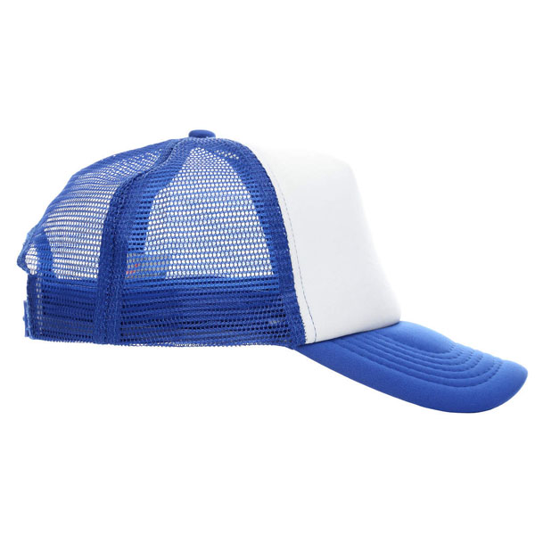 Przedni panel w kolorze białym wypełniony grubą,sztywną pianką; daszek pokryty pianką; tylne panele wykonane z siatki; tylna regulacja; 5 paneli.