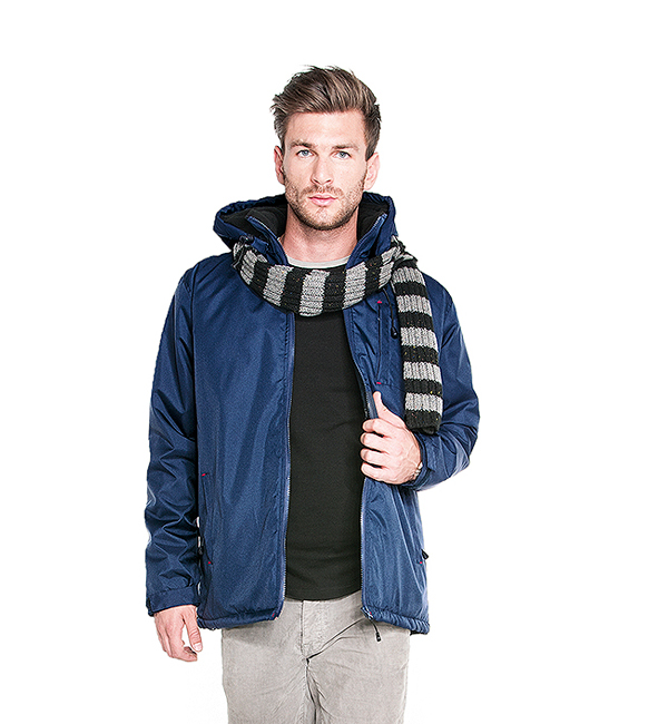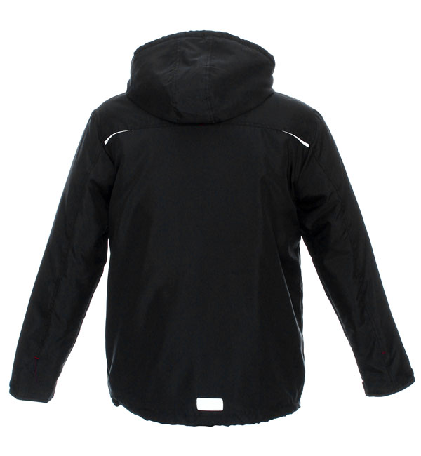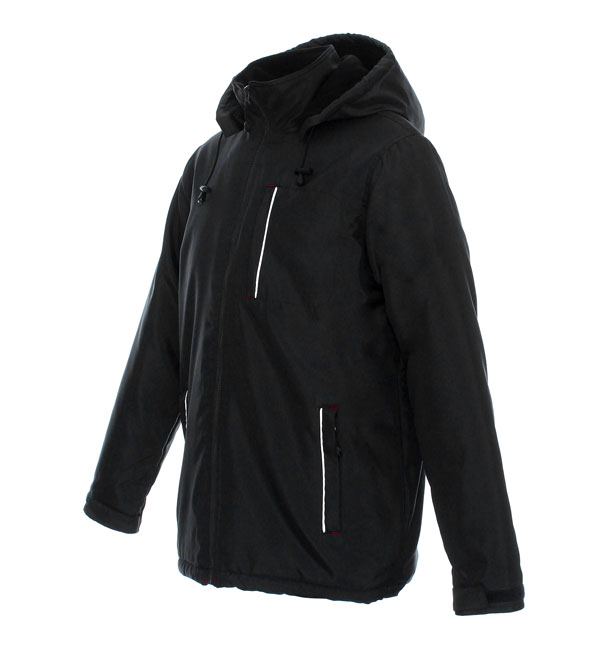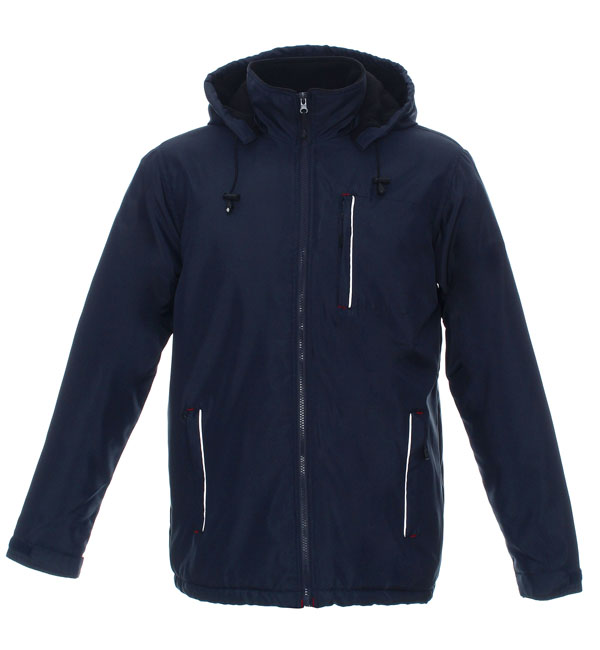 Kurtka jesienno-zimowa z polarem; odpinany kaptur, wnętrze stójki wyłożone polarem; trzy kieszenie zewnętrzne zapinane na suwak, wewnątrz kieszeń na dokumenty; regulowane mankiety - rzepy; dekoracyjne przeszycia.