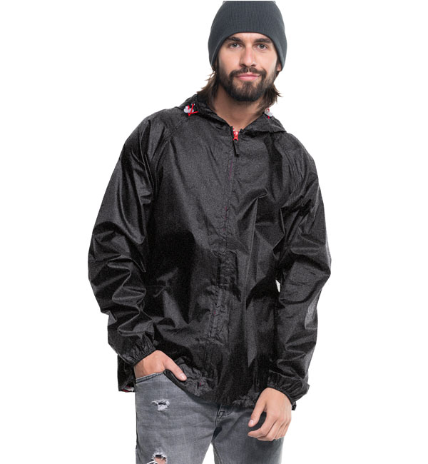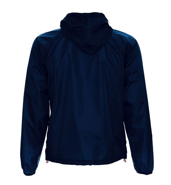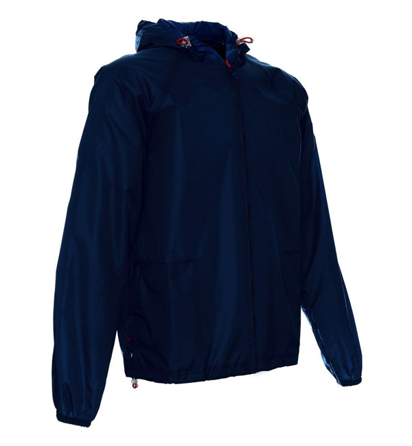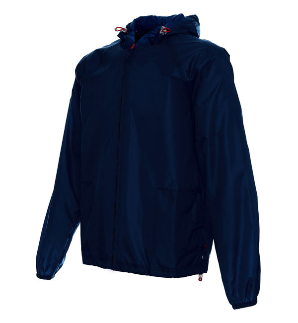 kurtka przeciwdeszczowa; klejone górne szwy; gumka w regulacji kaptura i dołu.