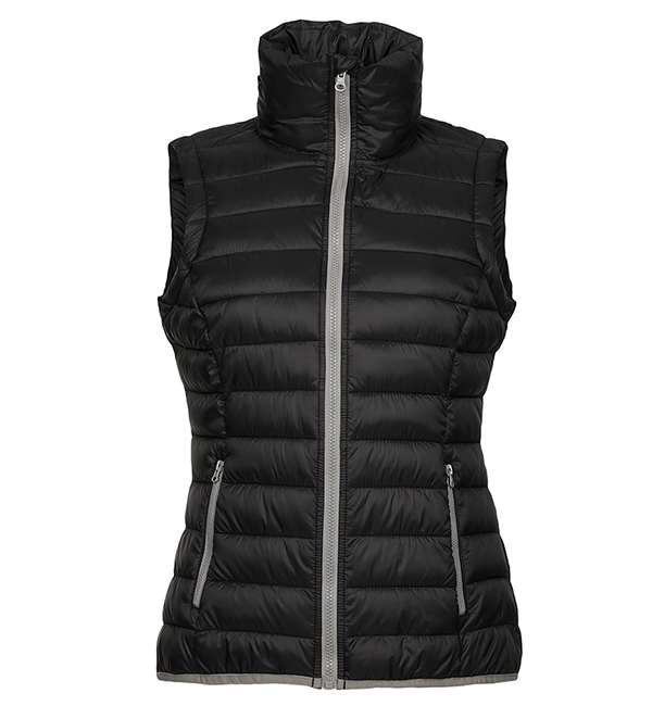 Ten lekki pikowany bezrękawnik dla kobiet z połyskliwą nylonową warstwą zewnętrzną i poliestrowym wypełnieniem zapewnia znakomitą izolację termiczną. Ma też przydatne detale: stojący kołnierz z wbudowanym kapturem, zamki błyskawiczne w kontrastującym kolorze i poliestrowe obszycia.