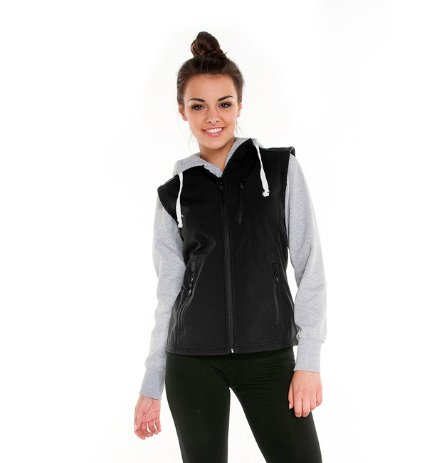 Kamizelka z membraną; materiał typu softshell połączony z polarem; dwie kieszenie boczne i jedna kieszeń na piersi zamykane na zamek; wydłużony tył; wodoodporność: 3000 mm słupa wody; oddychalność: 500 g/m2/24e.