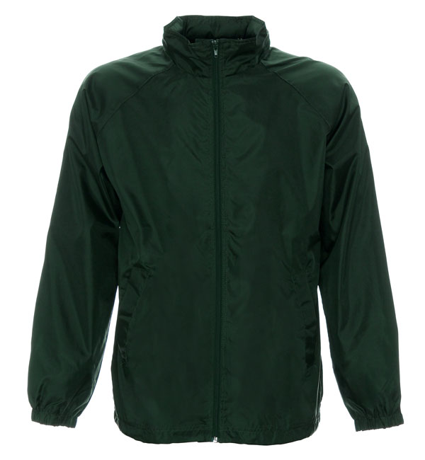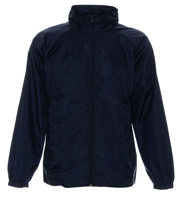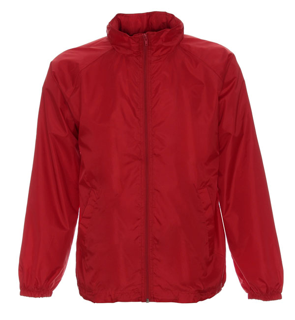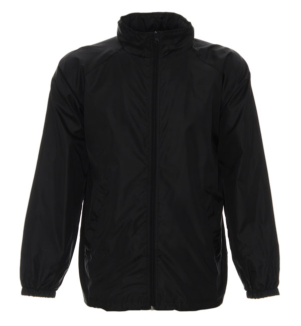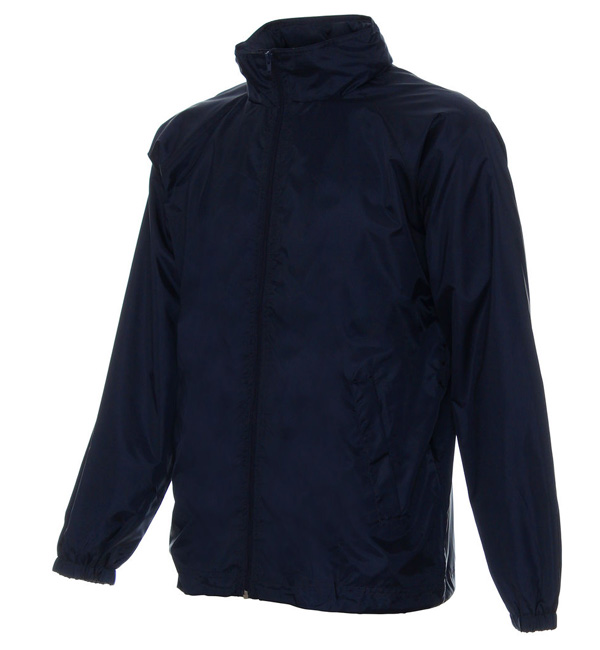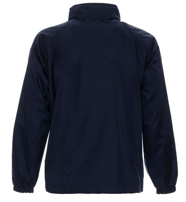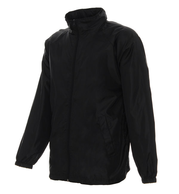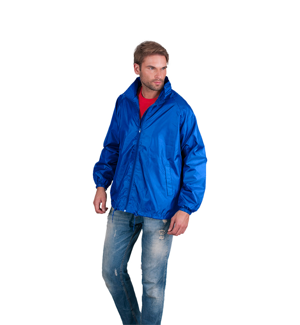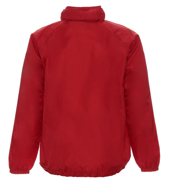 Kurtka wiatroszczelna z podszewką; kaptur chowany w stójce; dwie kieszenie zewnętrzne; system ściągaczy u dołu.