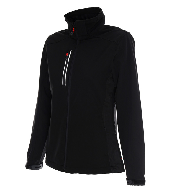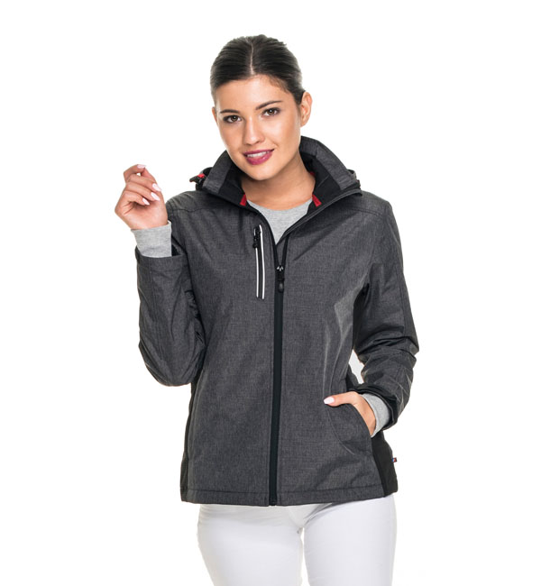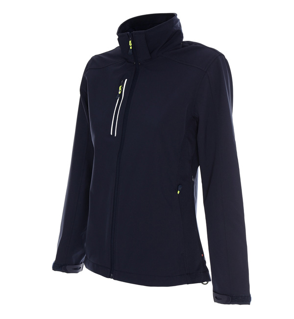 Lekka oddychająca kurtka z membraną, materiał połączony z polarem, odpinany kaptur, dwie kieszenie boczne i kieszeń na piersi zamykane na zamek, system ściągaczy u dołu wewnątrz, zamki pod pachą, regulacja mankietów na rzep, wodoodporność 8000 mm, oddychalność 5000 g/m2/24h.