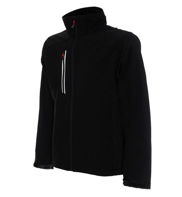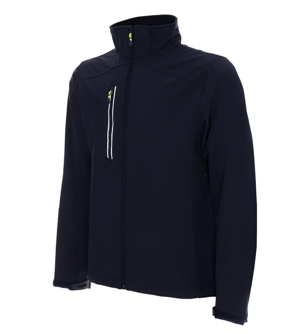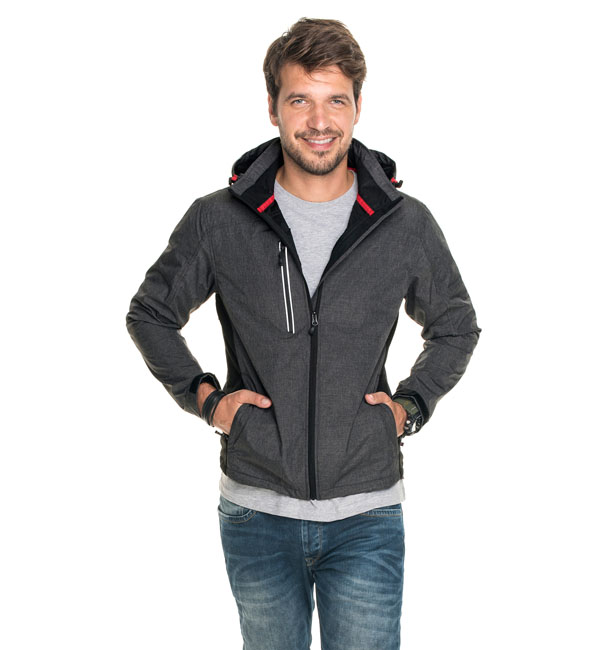 Lekka oddychająca kurtka z membraną, materiał połączony z polarem, odpinany kaptur, dwie kieszenie boczne i kieszeń na piersi zamykane na zamek, system ściągaczy u dołu wewnątrz, zamki pod pachą, regulacja mankietów na rzep, wodoodporność 8000 mm, oddychalność 5000 g/m2/24h.