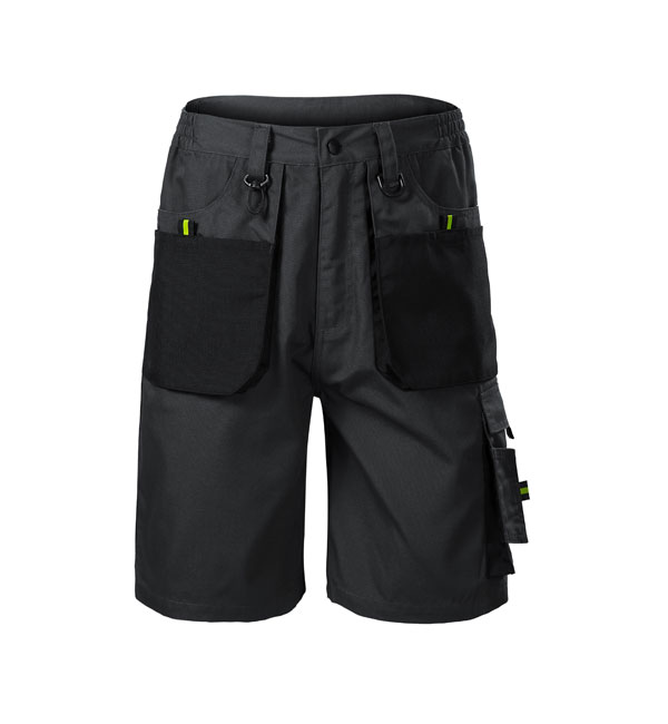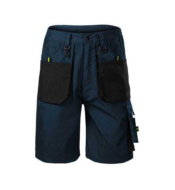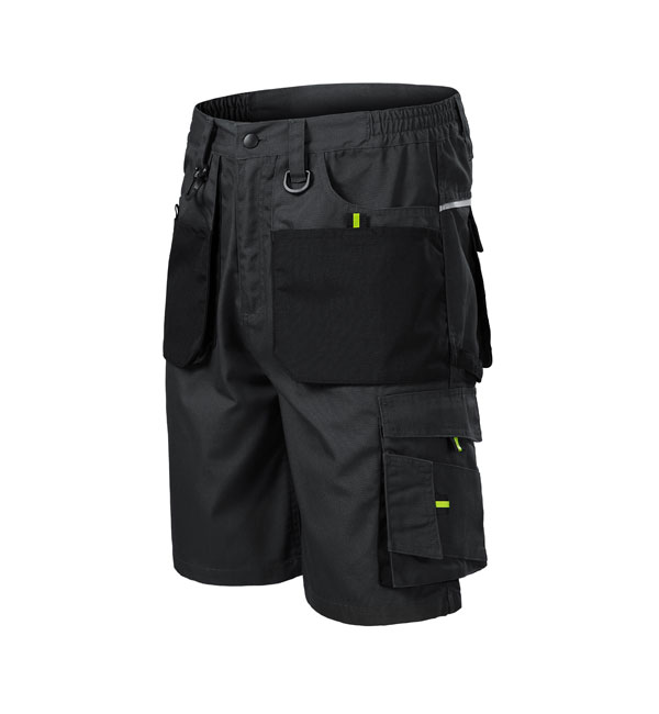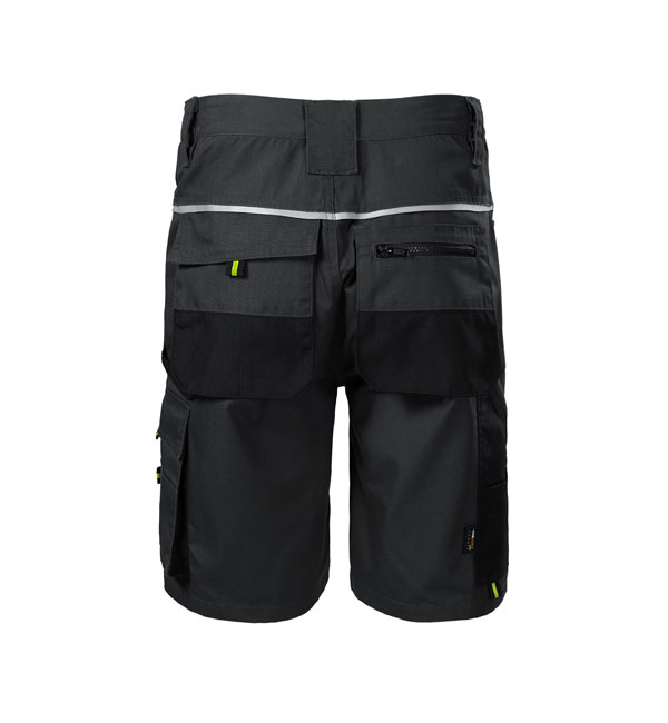 Wygodne i wytrzymałe spodenki robocze. Splot płcieńny; taśma odblaskowa w tylnej części, wielofunkcyjne kieszenie; elastyczna taśa wokół pasa regulowana ściągaczem; CORDURA w kontrastowym kolorze.