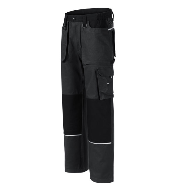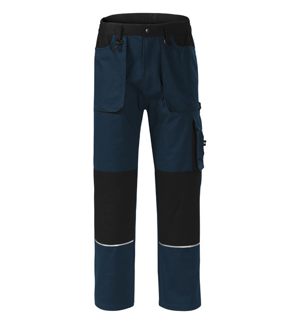 Wygodne i wytrzymałe spodenki robocze. Splot płcieńny; taśma odblaskowa na przedniej i w tylnej części, wielofunkcyjne kieszenie; elastyczne boczne części w pasie; wzmacniająca podwójna warstwa materiału na kolanach, pętelka na młotek.