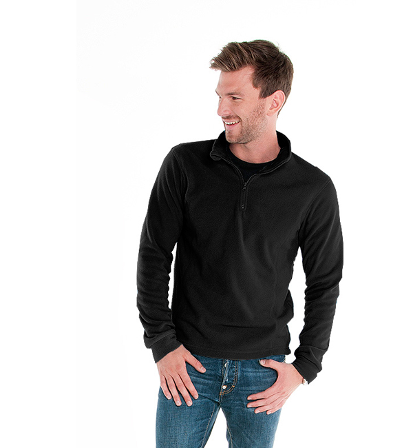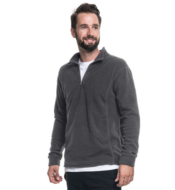 Lekka bluza polarowa; materiał miękki i przyjemny w dotyku; stójka zapinana na suwak; ozdobne szwy.