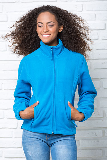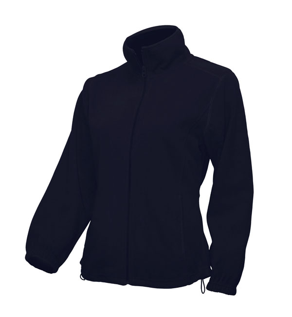 Bluza polarowa damska, taliowana, z suwakiem i dwoma zapinanymi kieszeniami. Stopery. Mikropolar z wykończeniem antypilingowym. Sznurek ściągający z regulacją.