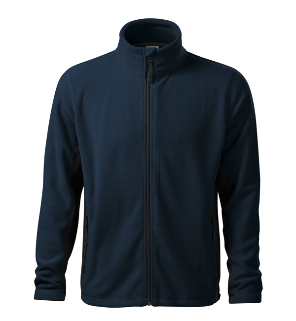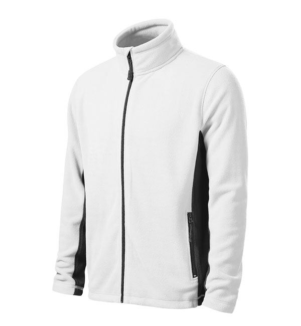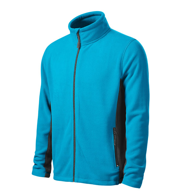 Męski polar wykończony kontrastowymi dodatkami; 2 kieszenie przednie zapinane na zamek błyskawiczny; kołnierz stojący z zabezpieczeniem zamka pod brodą; ozdobne szwy; dolny ściągacz regulowany za pomocą elastycznego sznurka; wykończenie antypillingowe na zewnętrznej stronie.