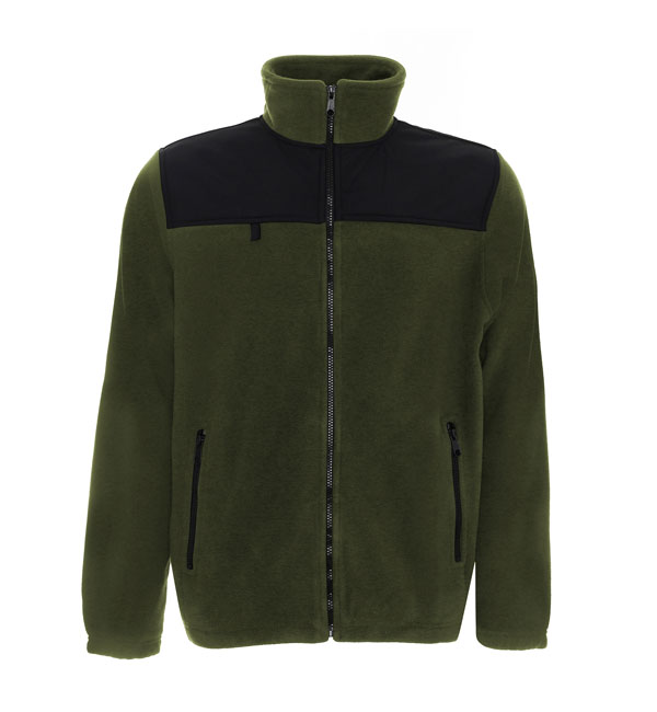ciepły, grubu polar; z przodu i z tyłu wstawka materiału umożliwiająca wykonanie nadruku; wykończenie antypillingowe oraz water-repellent; zamki kostkowe; elastyczna taśma wszyta w dole bluzy i rękawów