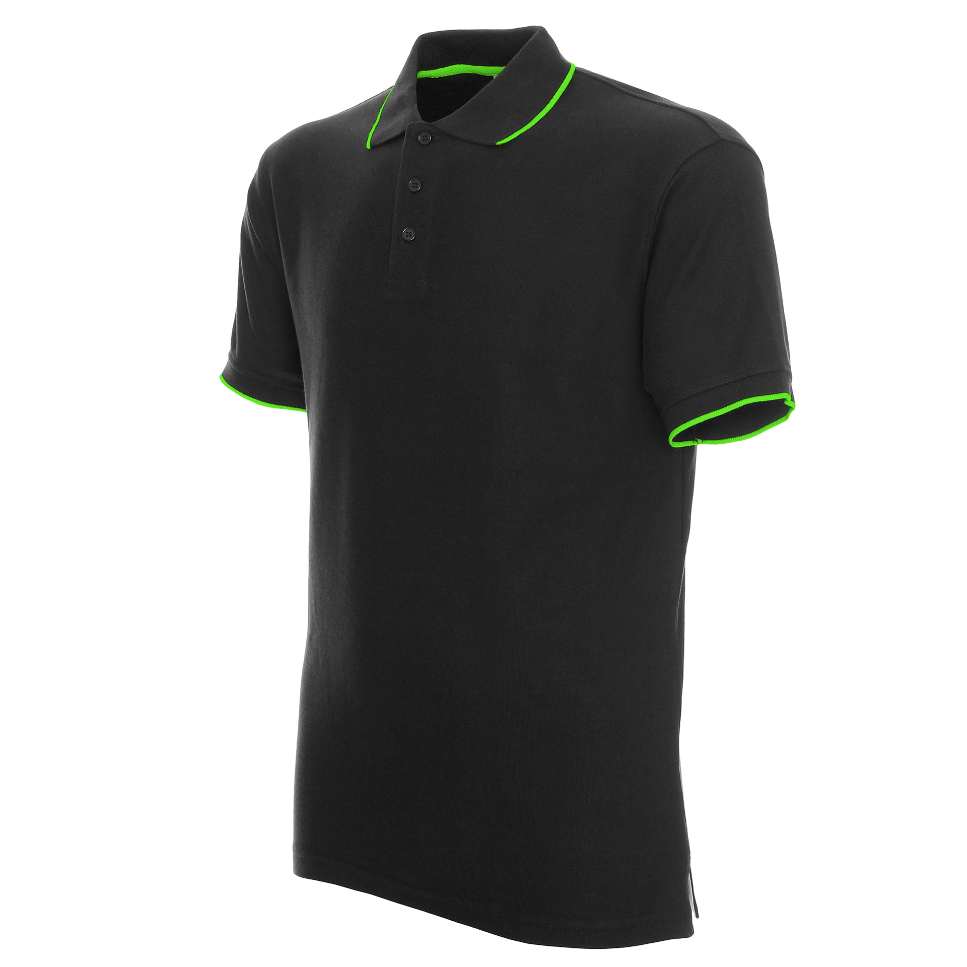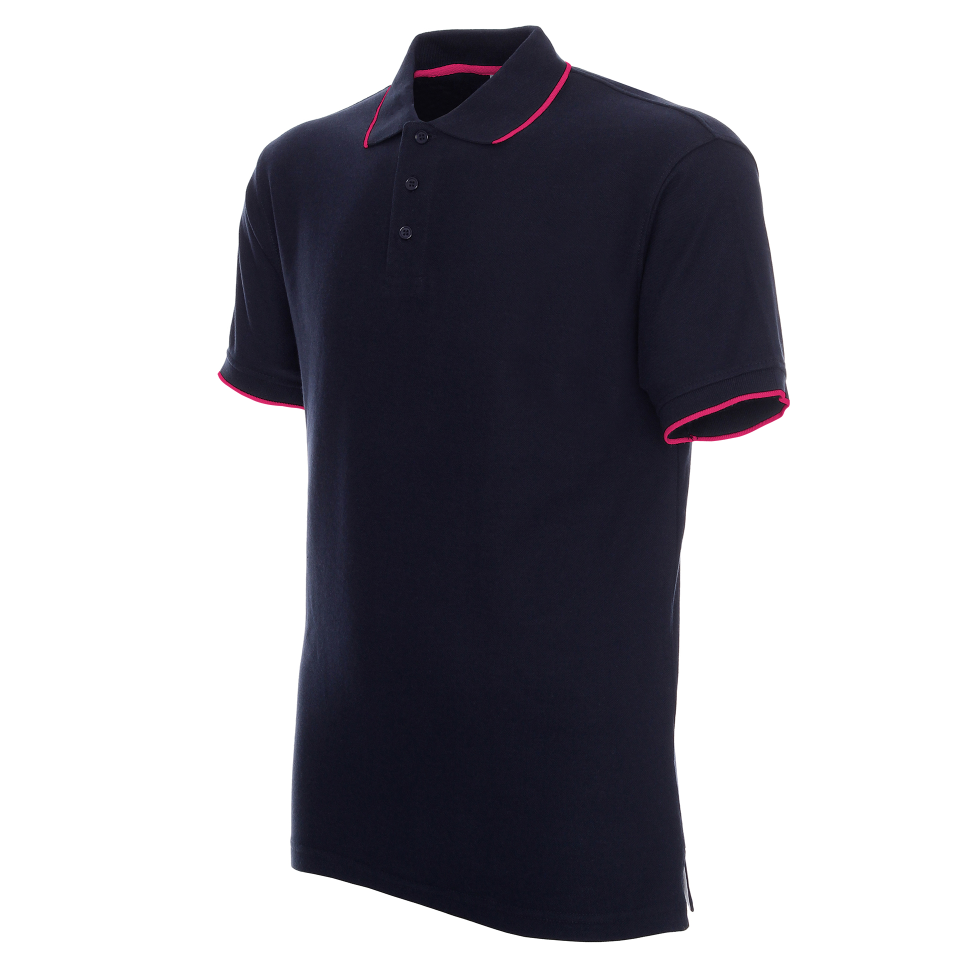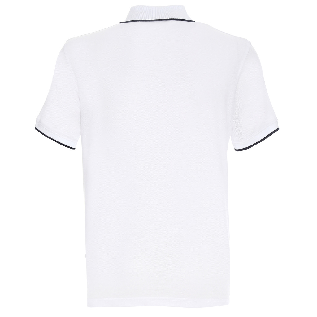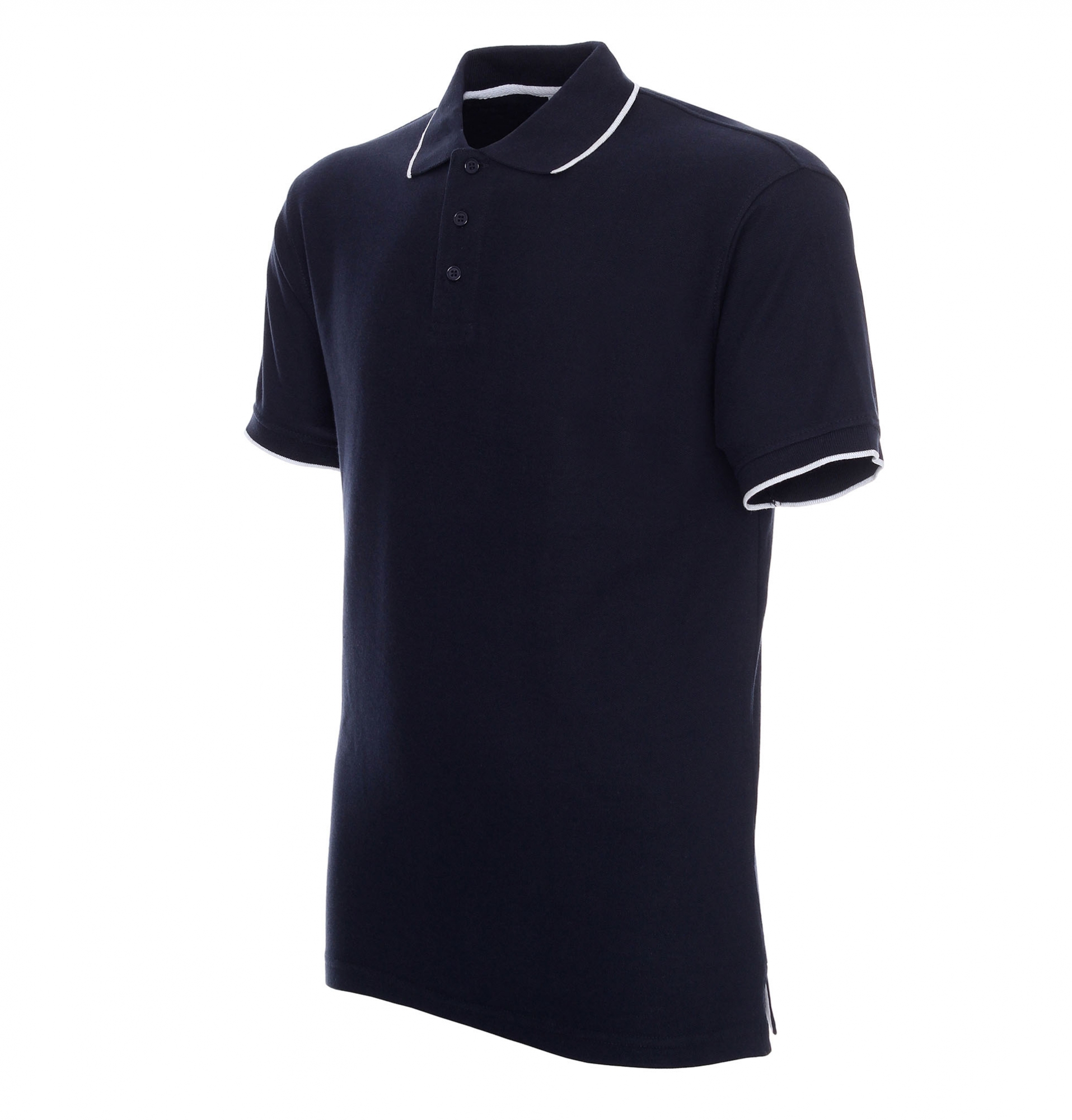 Dekoracyjne paski na rękawach i kołnierzu; taśma twillowa; rozcięcie na bokach; podwójne szwy.