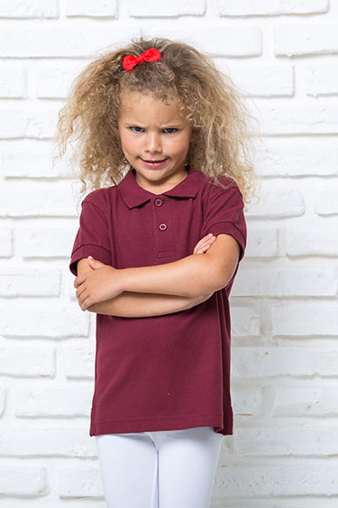 Polo dziecięce z krótkim rękawem. Miękki chwyt bawełny. Zapinane na dwa guziki. Ściągacze na rękawach. Boczne rozcięcia.