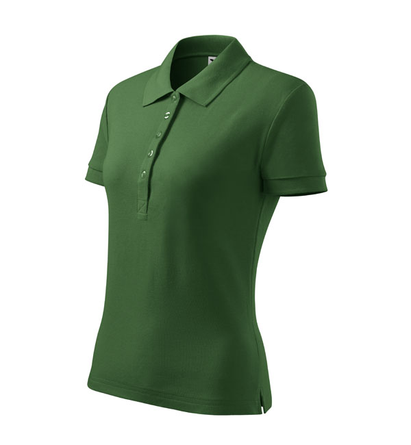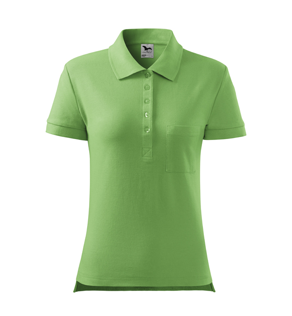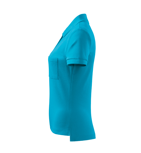 Koszulka Polo damska o średniej gramaturze z przedłużoną tylną częścią. Przedłużona część tylna oraz rozcięcie w szwach bocznych. Listwa z 5 guzikami w kolorze materiału. Kołnierz oraz rękawy wykończone lamówką ze splotu żeberkowego. Uzupełnienie modelu męskiego koszulki Polo Cotton. Świetnie nadaje się pod haft i nadruk.