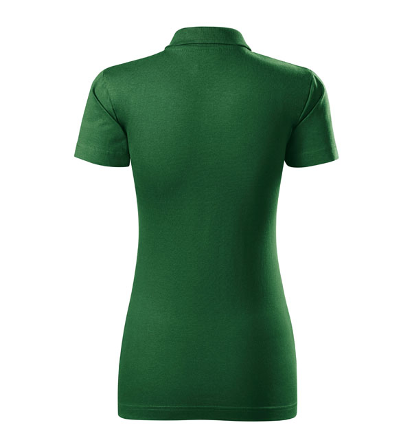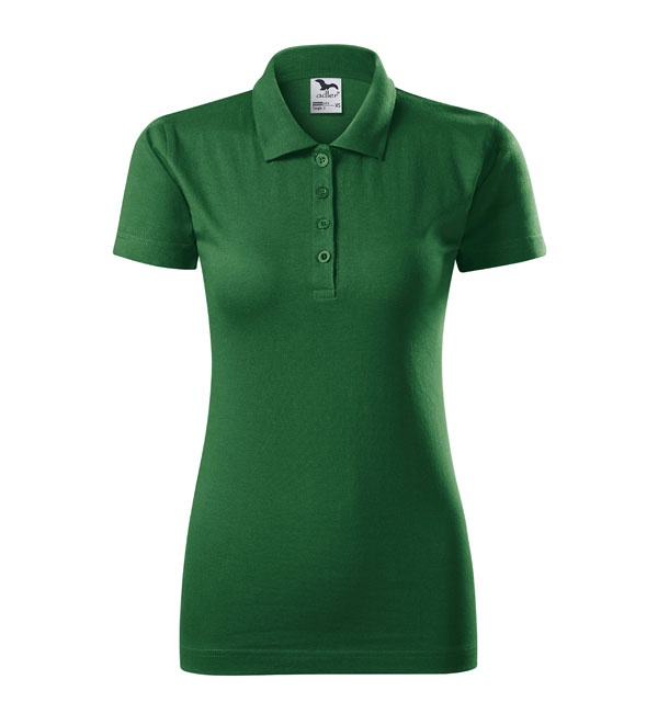 Koszulka polo damska o wysokiej gramaturze z gładkiego materiału , szczególnie nadająca się pod nadruki oraz hafty. Kołnierzyk i dwa guziczki w kolorze koszulki, podwójne szwy, wzmacniający ramienny pasek, dwukolorowa tkana etykietka, korpus z bocznymi szwami. Wyróżnia się świetną jakością materiału i szycia.
