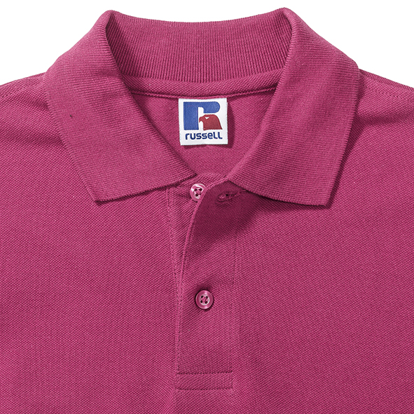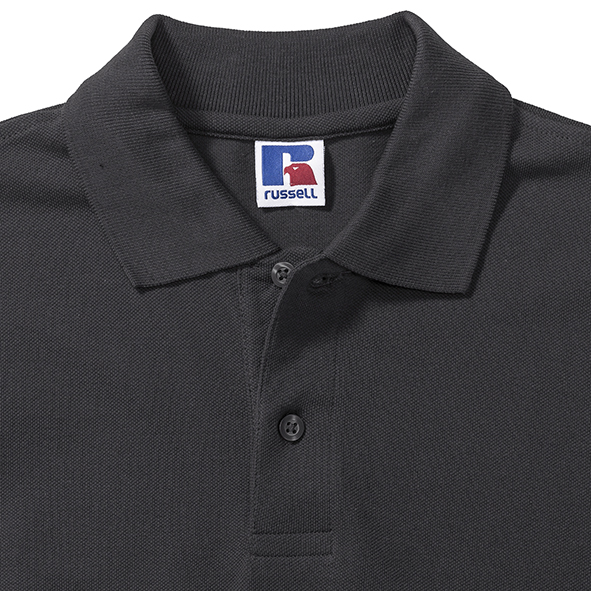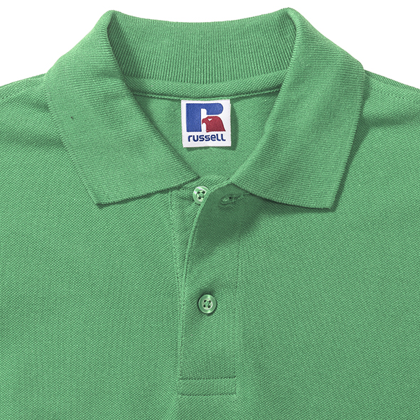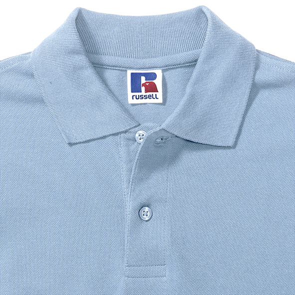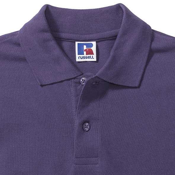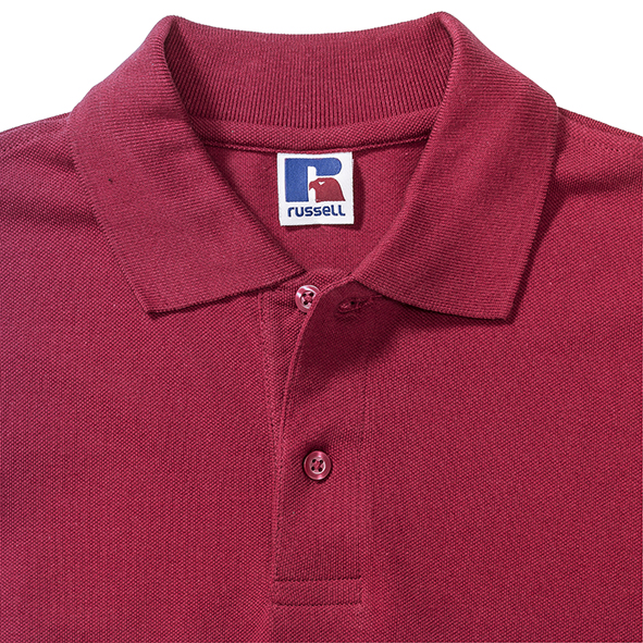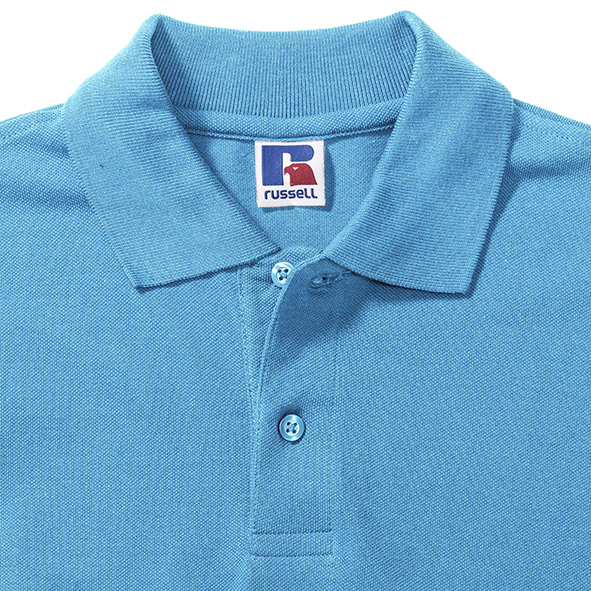 Koszulki polo męskie marki Russell z zapięciem na 2 guziki. Wykonane w 100% z pikowanej bawełny ring-spun. Taśma wzmacniająca na szyi dla większego komfortu. Boczne szwy z rozcięciem. Klasyczne, płaskie, stylowe, mankiety dzianinowe. Na ramionach wzmocnione szwy. Dół koszulek polo wykończony podwójnym szwem. Zapasowy guzik na szwie bocznym.