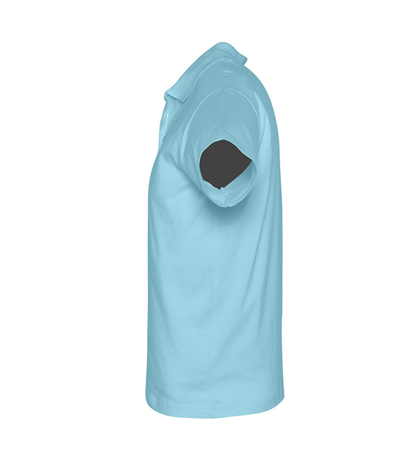 100% bawełny pół-czesanej, wzmacniająca taśma na karku, szwy boczne. Modny styl. Kołnierzyk wykonany ścięgiem, plisa z 3 guzikami pod kolor tkaniny.