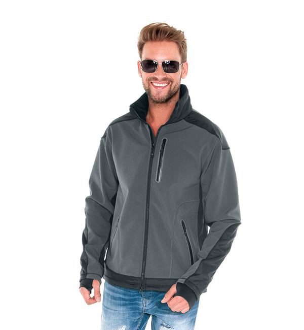Oddychająca kurtka z membraną; materiał typu softshell połączony z mikropolarem; wodoodporność: 8000mm słupa wody; oddychalność: 3000g/ m 2 /24h; oryginalne zamki firmy YKK; system 4 wywietrzników pod pachą; lycra w mankiecie; kaptur chowany w stójce; trzy zewnętrzne kieszenie zapinane na wodoodporny suwak, wewnątrz kieszeń na telefon; system ściągaczy u dołu wewnątrz.