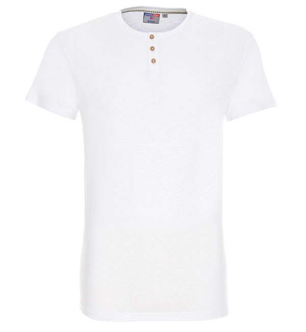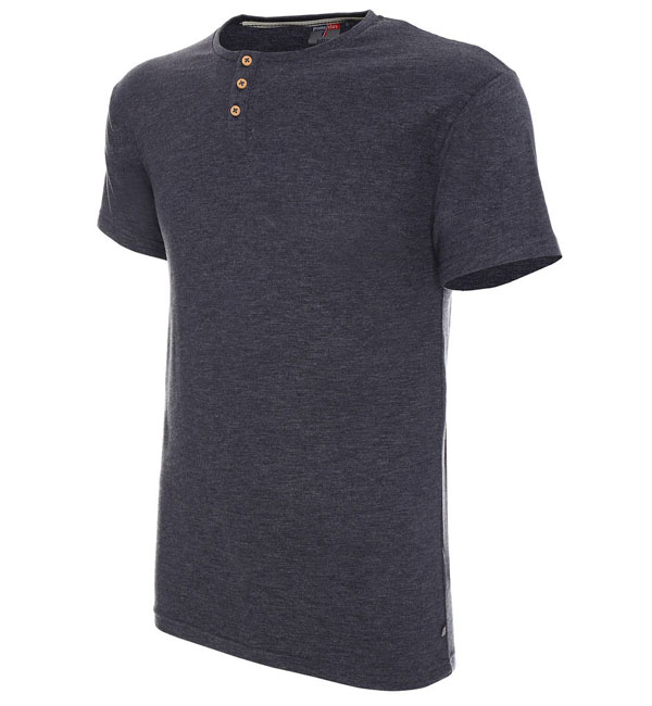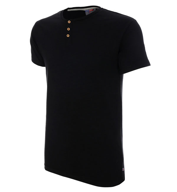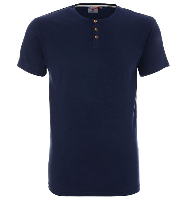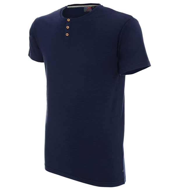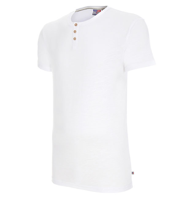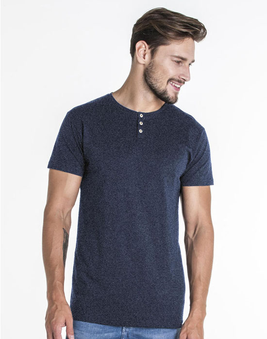 Miękki i gładki materiał single jersey typu slub; elastyczny ściągacz; ozdobna taśma wzmacniająca na karku; taśma wzmacniająca na ramionach; dekolt rozpinany ozdobnymi, drewnianymi guzikami; dopasowany krój.