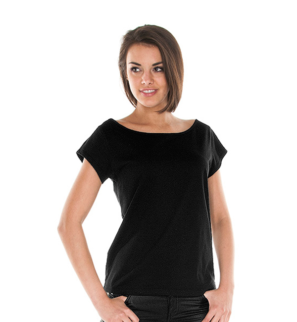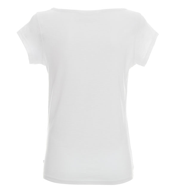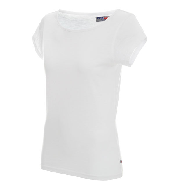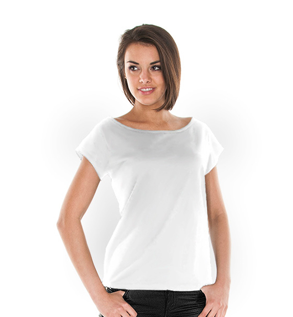 Miękki i gładki materiał single jersey typu slub; kołnierz wykończony lamówką, dekoracyjne przeszycia na rękawach.