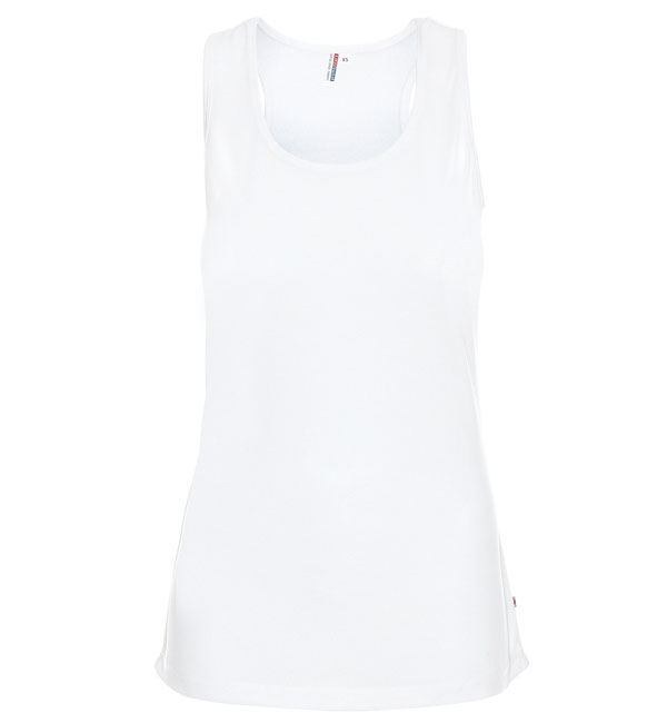 Sportowy t-shirt bez rękawów; lużny fason; dekolt i ramiączka wykończone lamówką; podwójne szwy; odrywalna metka.