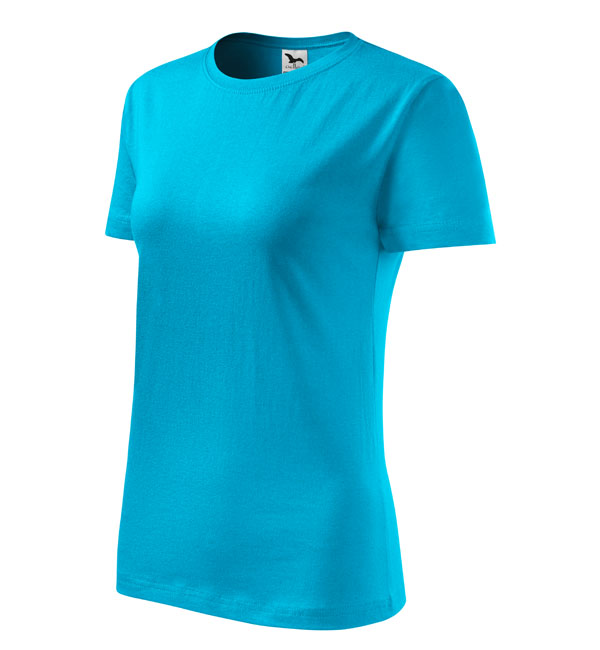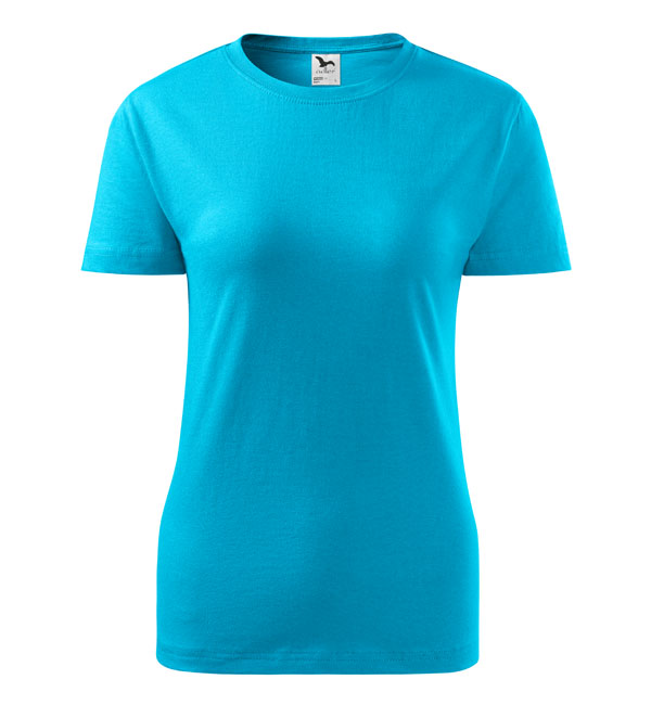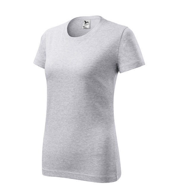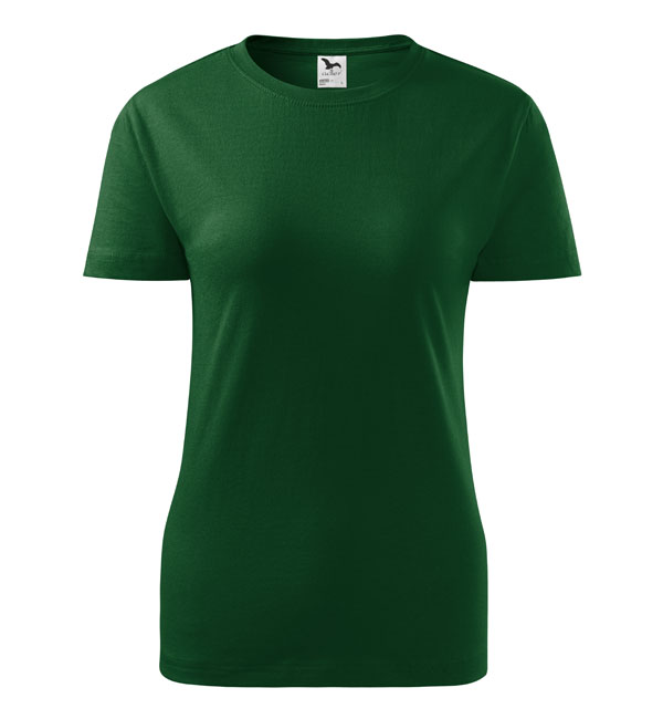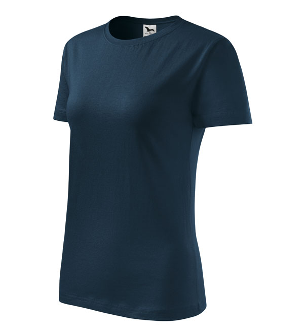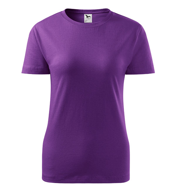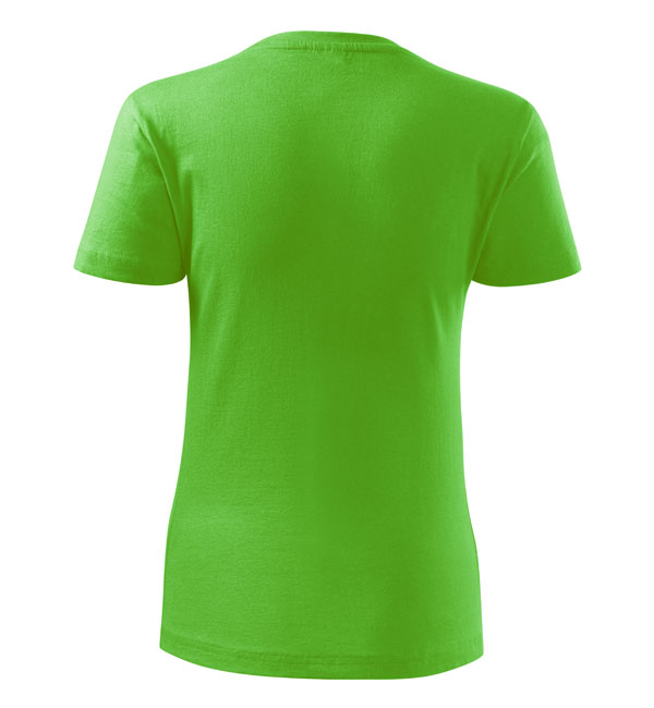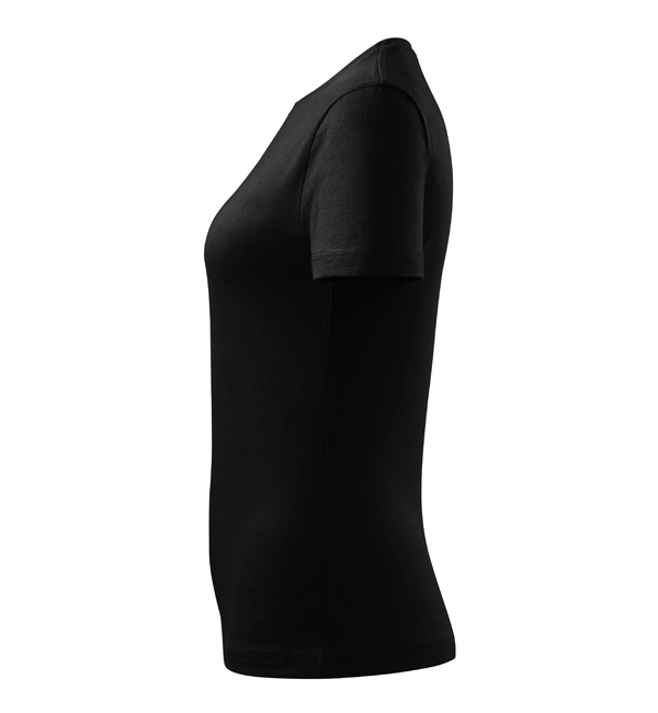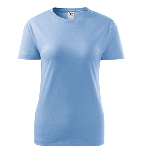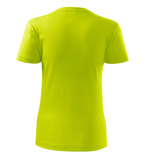 Koszulka damska wysokiej jakości o niższej gramaturze. Krój podkreślający damską sylwetkę. Wąska lamówka ze splotu żeberkowego. Węwnętrzna tylna część lamówki wykończona tkaną taśmą. Wzmocnienie na ramionach. Uzupełnienie męskiego i dziecięcego modelu koszulki Classic New. Świetnie nadaje się pod haft i nadruk.