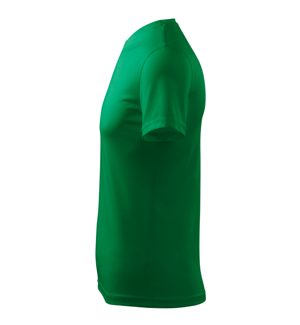 Nowoczesna koszulka z miękkiego, gładkiego materiału. Nadaje się do uprawiania sportu i codziennego noszenia. Interesujący, asymetrycznie podzielony dekolt. Krój z bocznymi szwami. Wraz z produktem 605 Spodenki męskie/dziecięce, można skompletować strój sportowy.