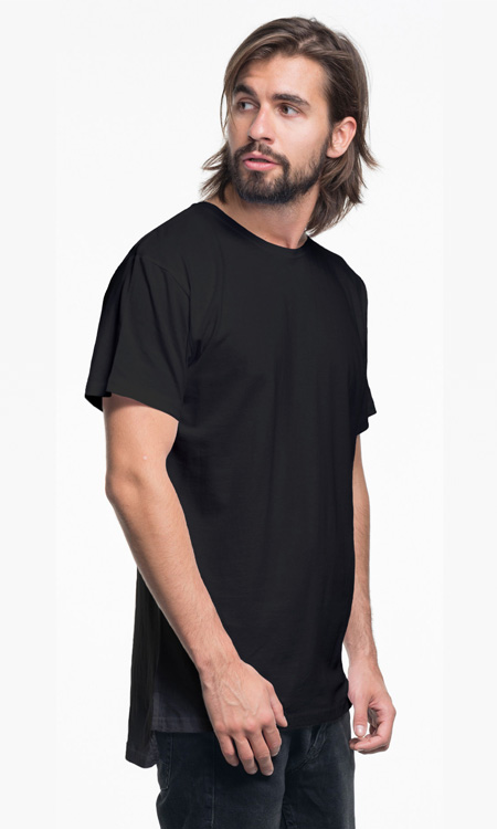 Luźny fason; dłuższy tył; elastyczny ściągacz; taśma wzmacniająca na karku i na ramionach; podwójne szwy; rozcięcie na bokach wykończone taśmą wzmacniającą od wewnątrz.