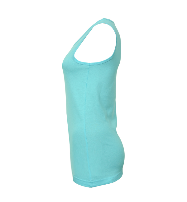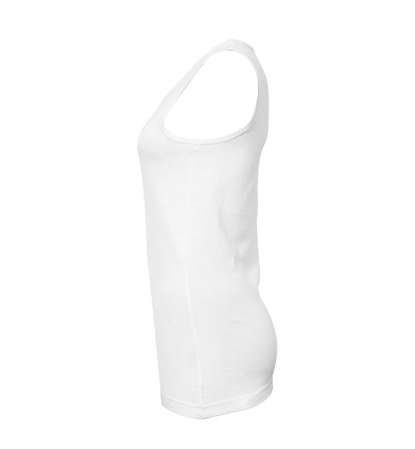 T-shirt damski dobrej ajkości ze 100% bawelny pół-czesanej, lamówka wokól szyi, szwy boczne.