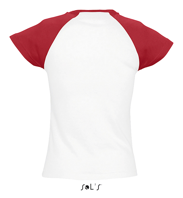 100% bawełny czesanej, wzmacniająca taśma na karku, ściągacz z dodatkiem elastanu. Stylowa i elegancka. Raglanowe rękawy.