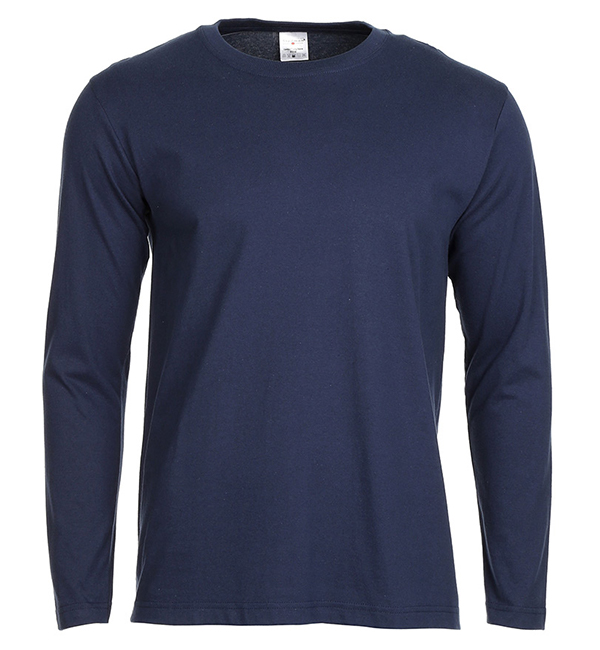 T-shirt męski z długim rękawem ze 100% wysokogatunkowej bawełny jednołożyskowej. Casual Fit, bez szwów bocznych, taśma wzmacniająca szwy rękawów, rękawki bez ściągaczy. Maksymalna temperatura prania 40°C.