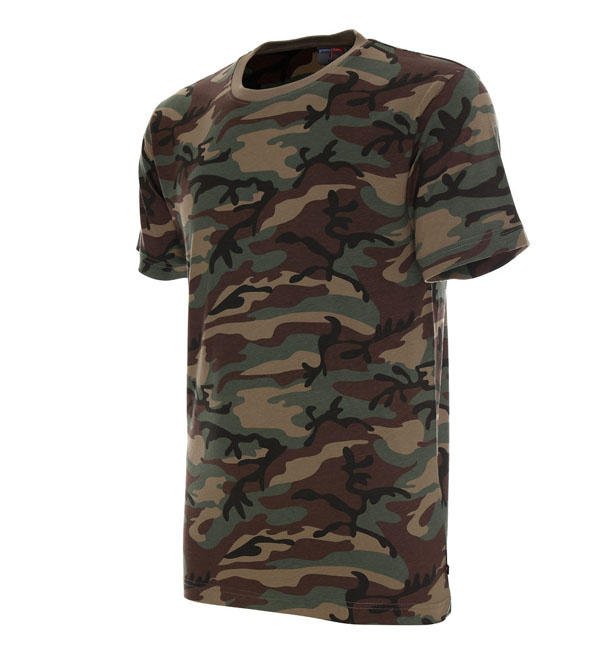 Miękki i gładki materiał z nadrukowanym wzorem moro; elastyczny ściagacz; taśma wzmacniająca na ramionach; podwójne szwy.