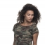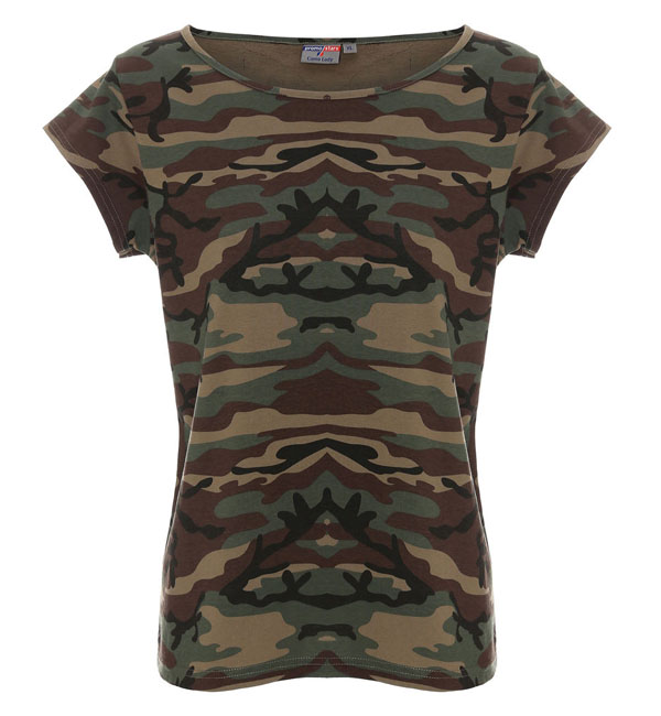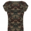 Miękki i gładki materiał z nadrukowanym wzorem moro; dekolt wykończony lamówką, taśma wzmacniająca na ramionach; podwójne szwy.