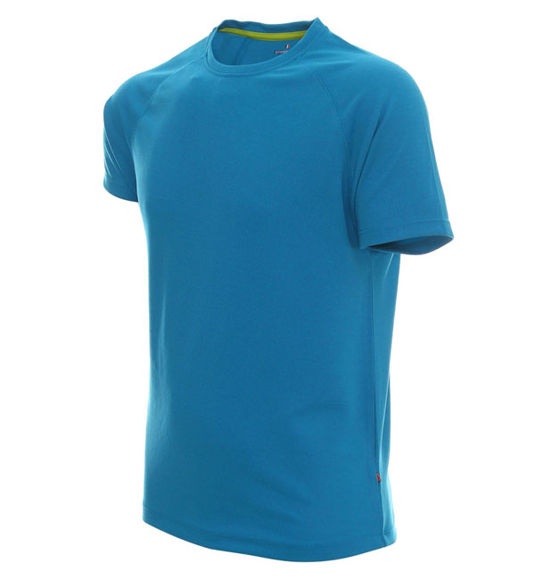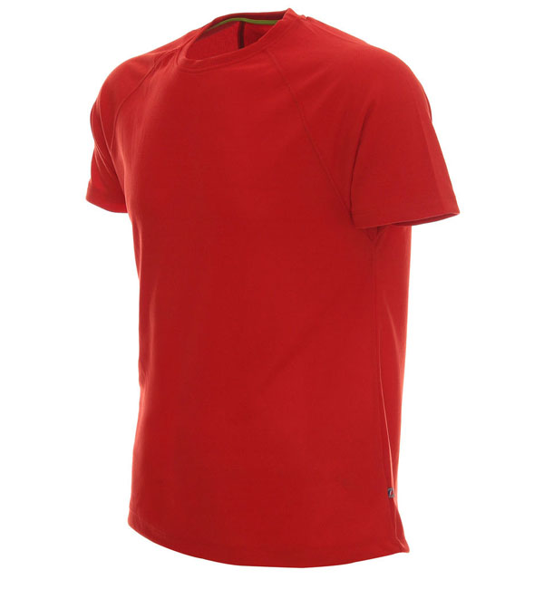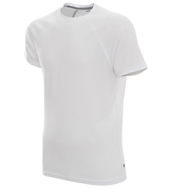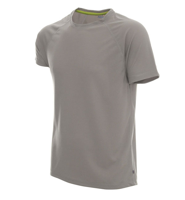 Sportowy t-shirt z raglanowymi rękawami; oddychający, szybkoschnący materiał, utrzymujący suchość ciała i jego optymalną temperaturę; materiał nadający się do sublimacji; szwy typu interlock.