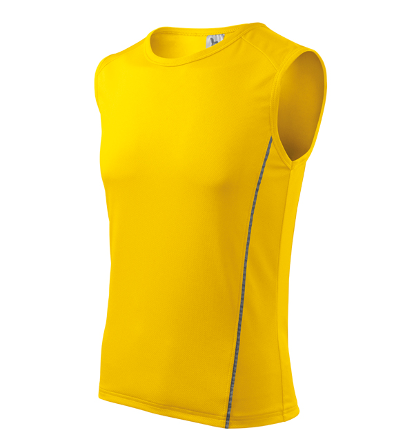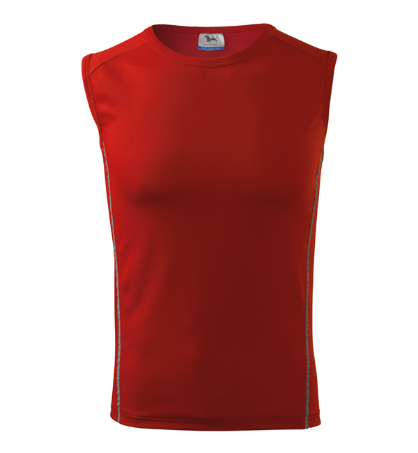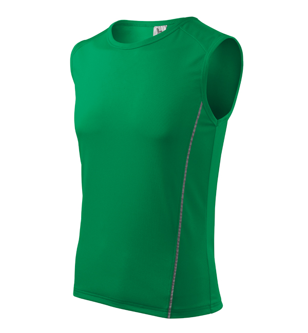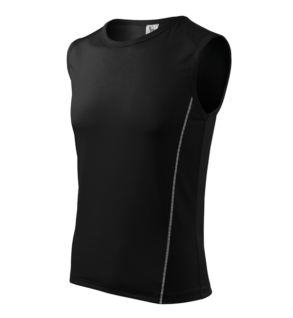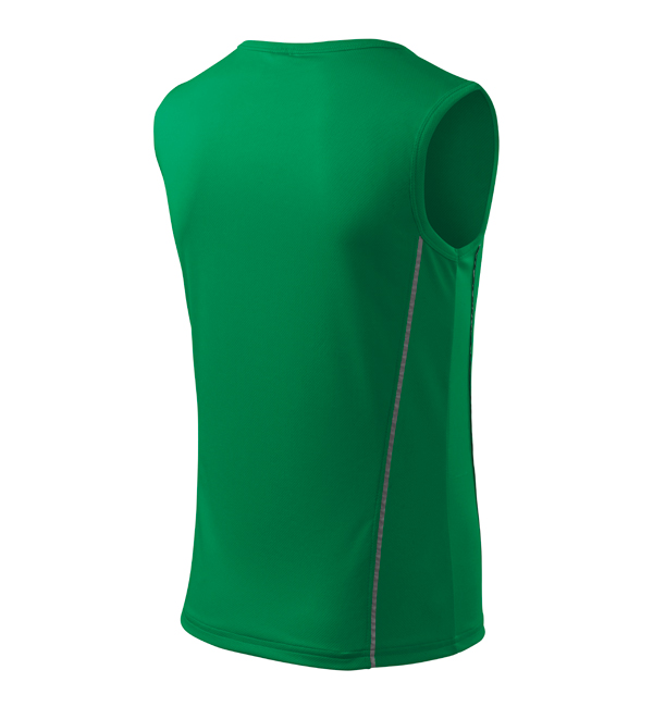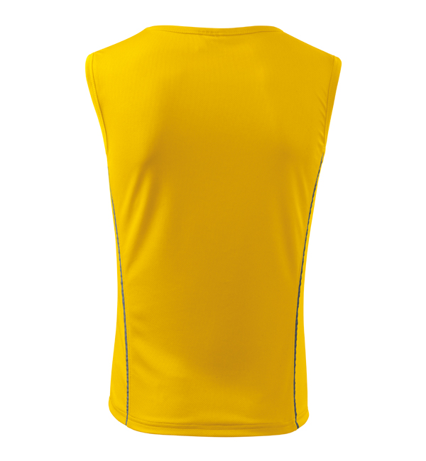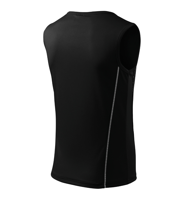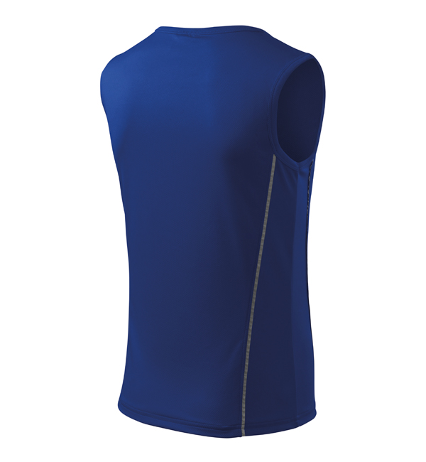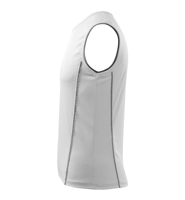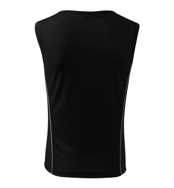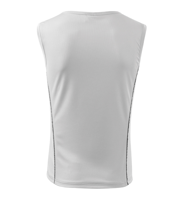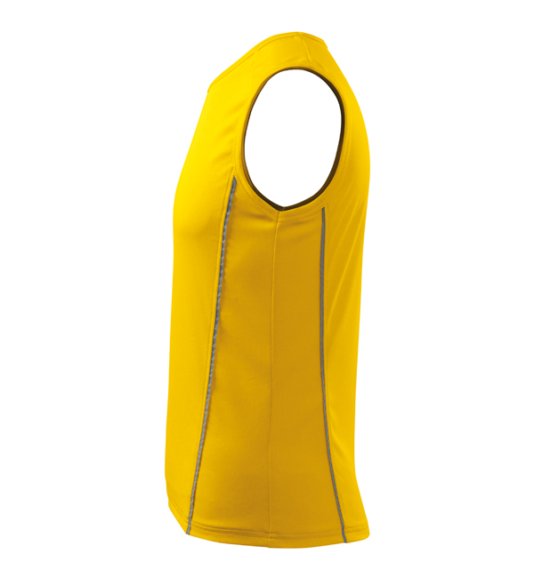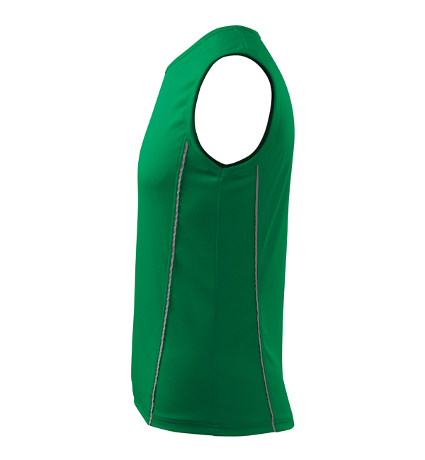 Koszulka-bezrękawnik, ukształtowana w części ramieniowej szwem dzielącym. Nadaje się do uprawiania sportu dzięki użyciu włókna formowanego. Owalny dekolt z lamowaniem z podstawowego materiału. Wzdłużne szwy dzielące, zdobione lamowaniem z odblaskowego materiału. Krój z bocznymi szwami.