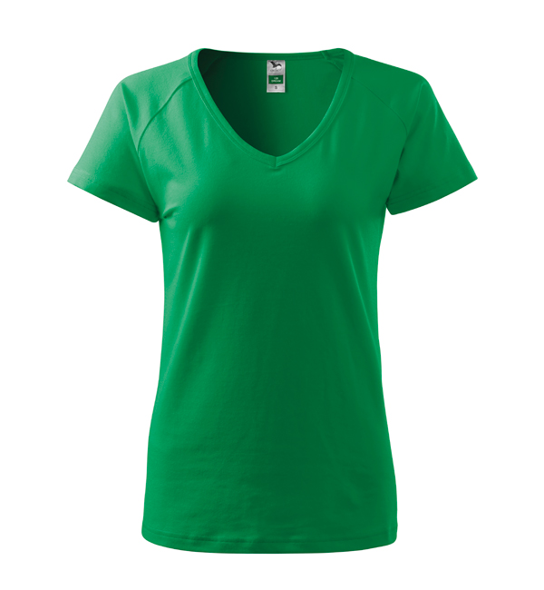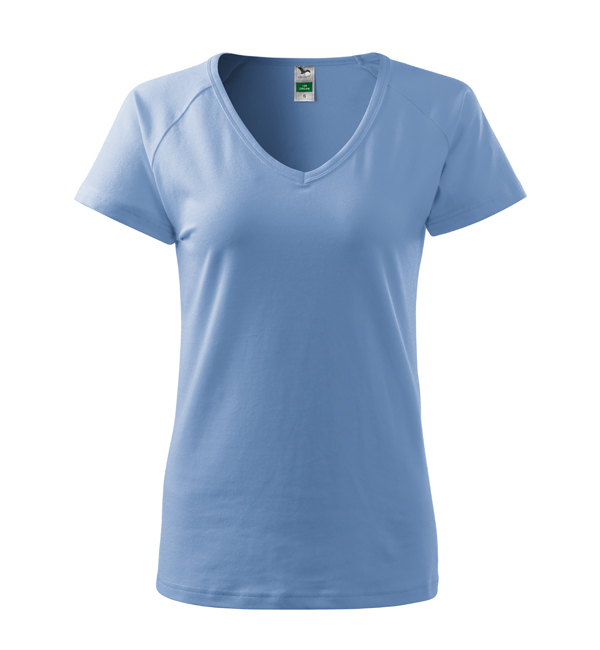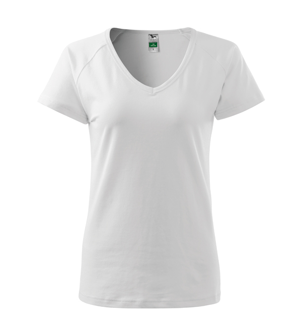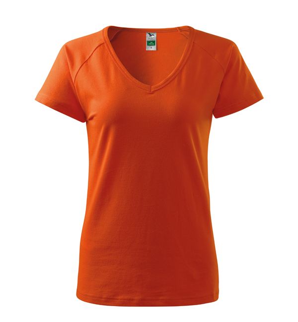 Wysokiej jakości koszulka damska o wysokiej gramaturze. Wycięcie w kształcie litery „V”. Krótki rękaw raglanowy. Wąski krój podkreślający kobiecą sylwetkę. Dzięki domieszce elastanu produkt zachowuje swój kształt. Doskonała pod haft i nadruk. IProdukt został unowocześniony. na życzenie naszych Klientów został zmieniony fason, który jest w tej chwili dłuższy (o 2 cm).